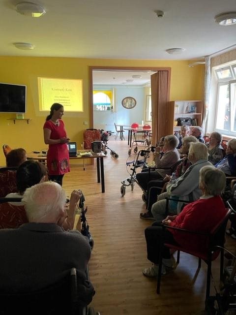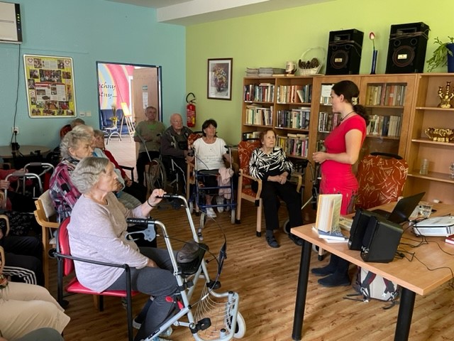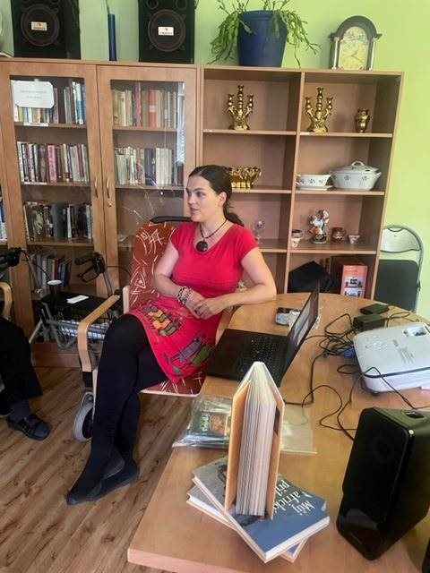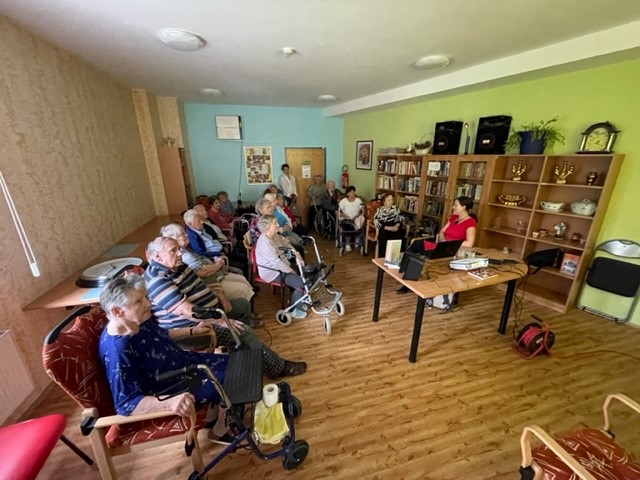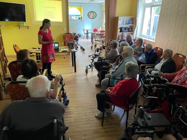 Paní Hindráková zapáleně vyprávěla na besedě své zážitky a zkušenosti z cestování po Keni, kam pravidelně jezdí už 7 let. Loni paní Hidráková uveřejnila svou první knihu o Keni i v angličtině. Její zapálení a projev byl krásný zážitek. Promítali jsme si fotky, pouštěli video a paní spisovatelka krásně vyprávěla. Na konci našeho setkání klienti soutězili o její nejnovější knihu v češtině. Hezky si to užili.