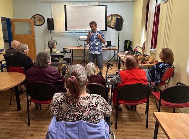 Na úterní odpoledne jsme si pozvali oblíbeného Pavla Justicha. Tentokrát nám přijel vyprávět o životě v Keni, kterou opakovaně navštěvuje. Povedlo se mu natočit autorský film, který nám také pustil. Byl velmi zajímavý a poučný. Cestování pana Justicha začalo už někdy v roce 2016. Tenkrát odjel do Keni poprvé za účelem natočení krátkého dokumentu. Poznal na vlastní oči, jak se tam žije a Keňu si zamiloval. Od té doby se tam vrací a natáčí krátké filmy. Námětů je v zemi, jako je Keňa, mnoho. Přivezl na ukázku sbírku masajských předmětů a vyprávěl nám o masajských tradicích. Dozvěděli jsme se, jak masajové bydlí, jak si tvoří příbytky a také, jak se tam budují školy. Slíbil nám, že se brzy vrátí s dalším dokumentem. A my se budeme těšit, s čím nás překvapí.