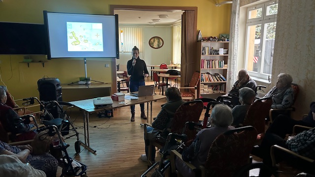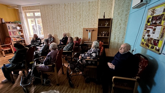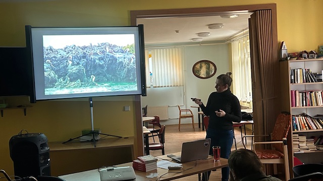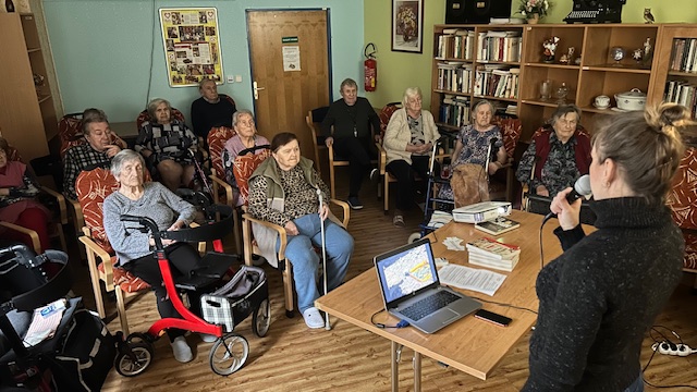 Míváme v našem Domově besedy o cestování relativně často, avšak tato byla něčím výjimečná. Snoubil se v ní pohled cestovatele a zoologa. Cestovatelka Tereza Košnařová měla velmi příjemný přednes. Vysoká srozumitelnost a nadšení byly už jen třešinkami na dortu. Zvířatům žijícím v této lokalitě byl věnován podstatný díl celého programu a naši klienti si tak mohli vyslechnout zajímavé informace o obrovských ještěrech, leguánech, suchozemských želvách a karetách obrovských. Prohlíželi jsme si obrázky galapážských tučňáků, fregatek, lachtanů, plaměňáků a modrozelených terejů. Bylo to velmi zajímavé posezení.