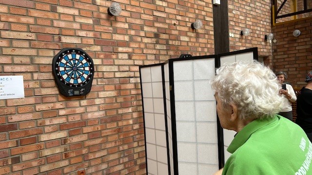 Tentokrát jsme zúročili pravidelný trénink motorických funkcí, kterému se v rámci aktivizace od léta věnujeme. Sportovní i kongnitivní činnosti jsme cvičili v rámci přípravy na Sportovní hry, které pořádá na podzim náš Domov a následně jsme je využili i na Sportovních hrách, které pořádá Domov pro seniory na Chodově na Praze 11 - Chodovská šipka. Jak název napovídá, jsou tyto hry zaměřené na Hod šipkou na cíl.