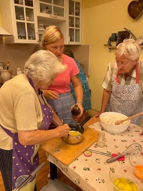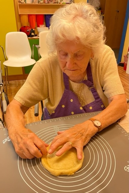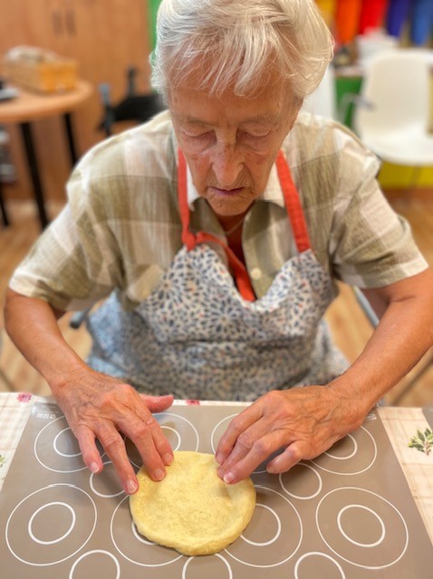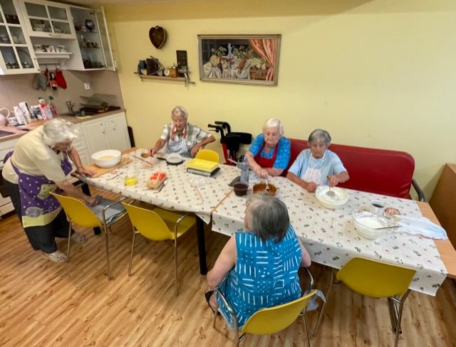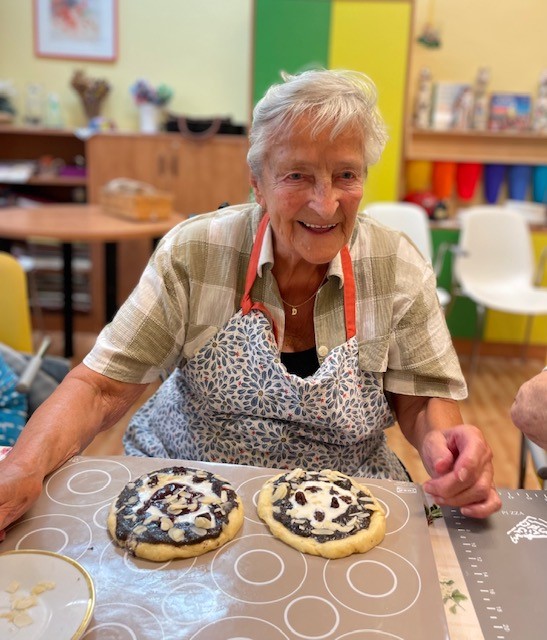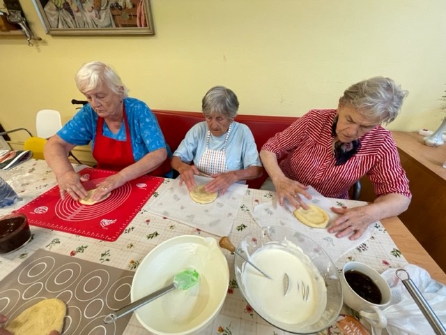 Jednou za čas se setkáme, abychom si společně upekli. Tato aktivita patří mezi ty nejoblíbenější. Vůně kuchyně připomíná mladší časy, kdy ještě všichni žili ve svých domovech obklopeni rodinou. Práce s těstem udržuje nejen motorické dovednosti, ale vrací vzpomínky do dob a míst, kde všem bylo dobře. Pečení chodských koláčů děláme s našimi obyvateli pravidelně a vždy se tato aktivita těší hojné účasti. Každý si v ní najde své. A to i co se týče chuti, protože náplně děláme vskutku všechny ty tradiční - mák, povidlo a tvaroh. Bylo nám dobře a pochutnali jsme si na výbornou.