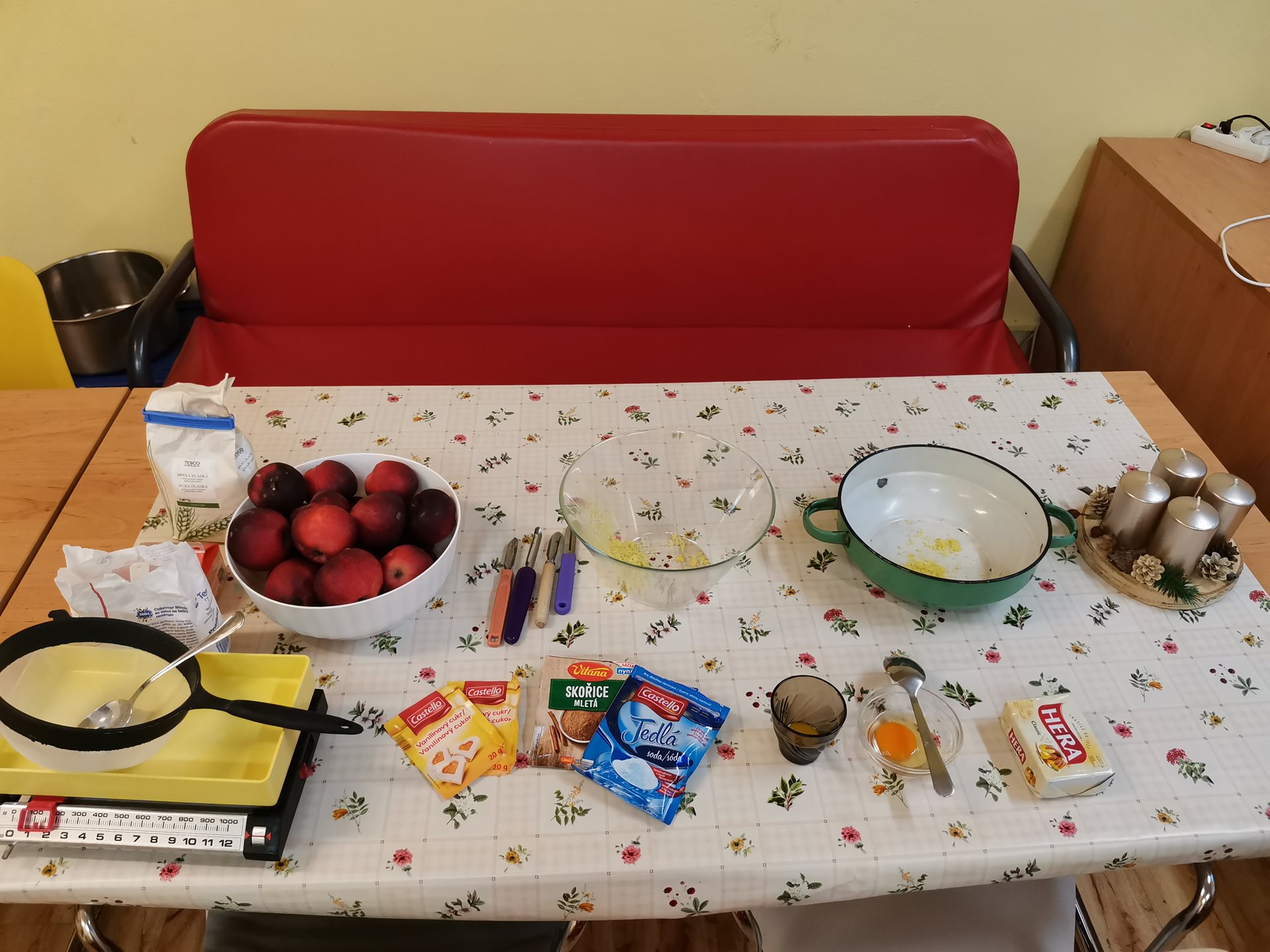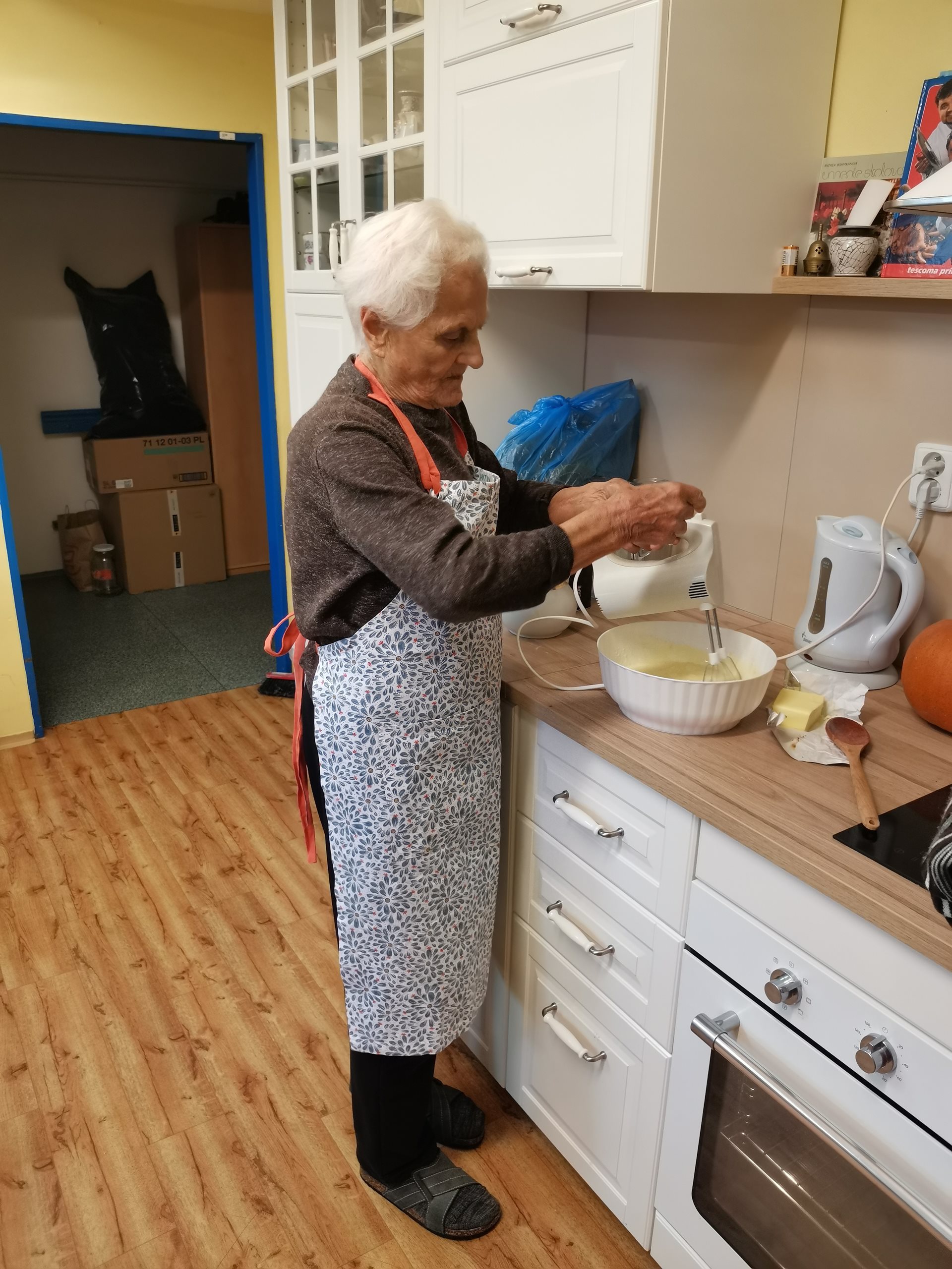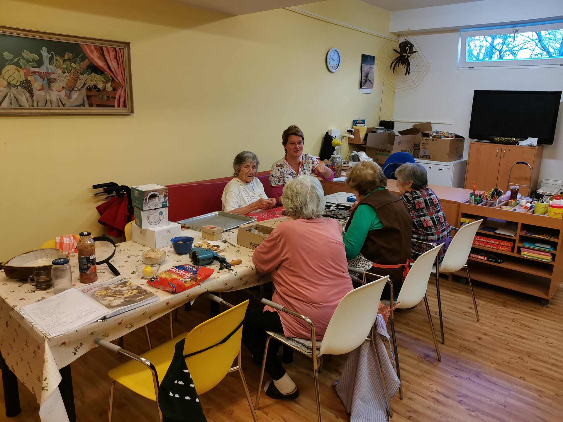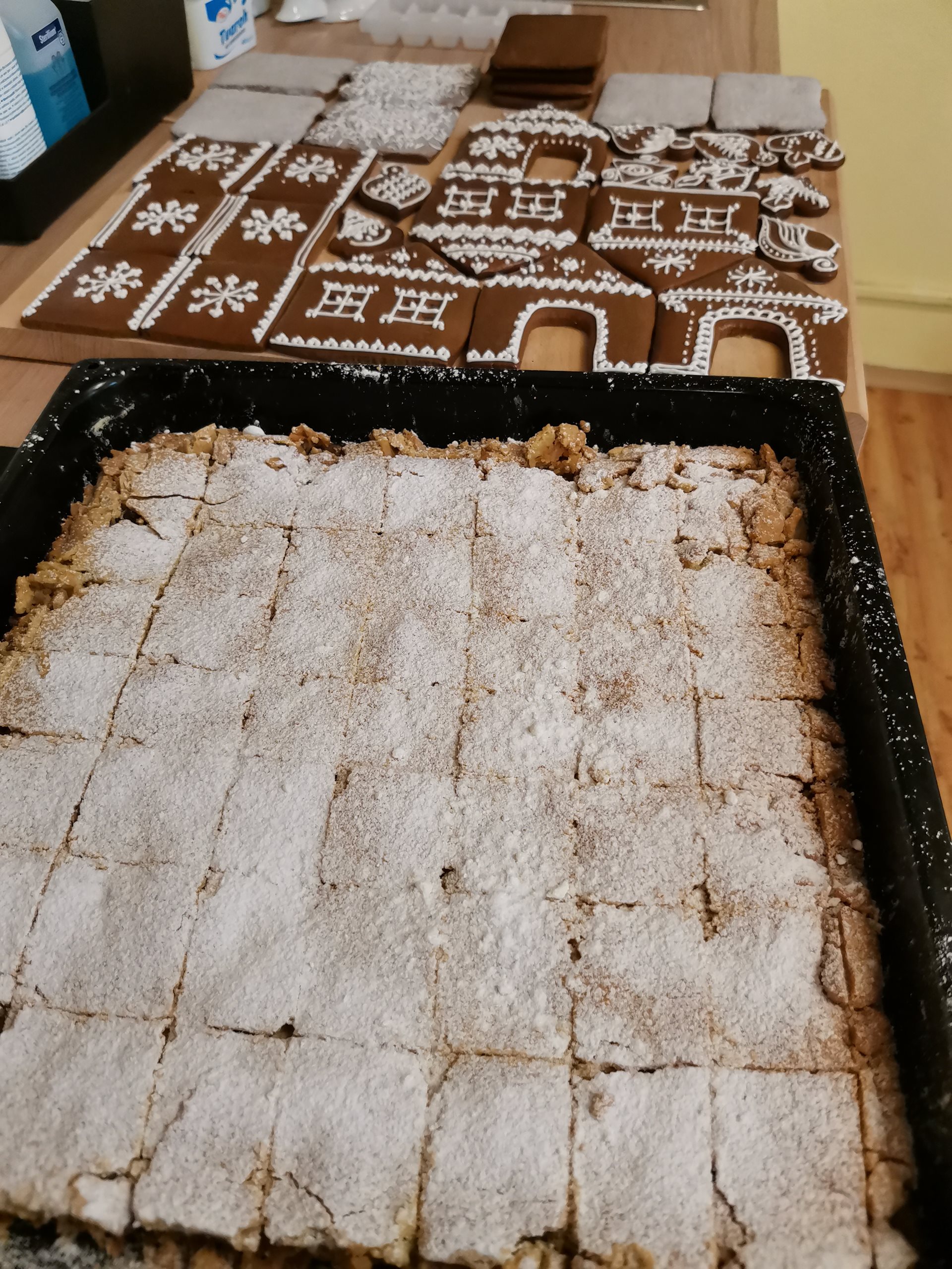 Zapojilo se hodně klientů, vůně vanilky, hřebíčku a skořice linoucí se po chodbách domova přilákala pozornost. Každý dělal, nač mu síly stačily. Někdo vymačkával pracny, někdo je vyklápěl z formiček a jiný skládal do krabičky na uchování do vánoc. Upekli jsme si i něco na zub (jablečné hraběnčiny řezy) a začali jsme s vyráběním perníkových chaloupek. Tak kolik jich letos poskládáme? :-)