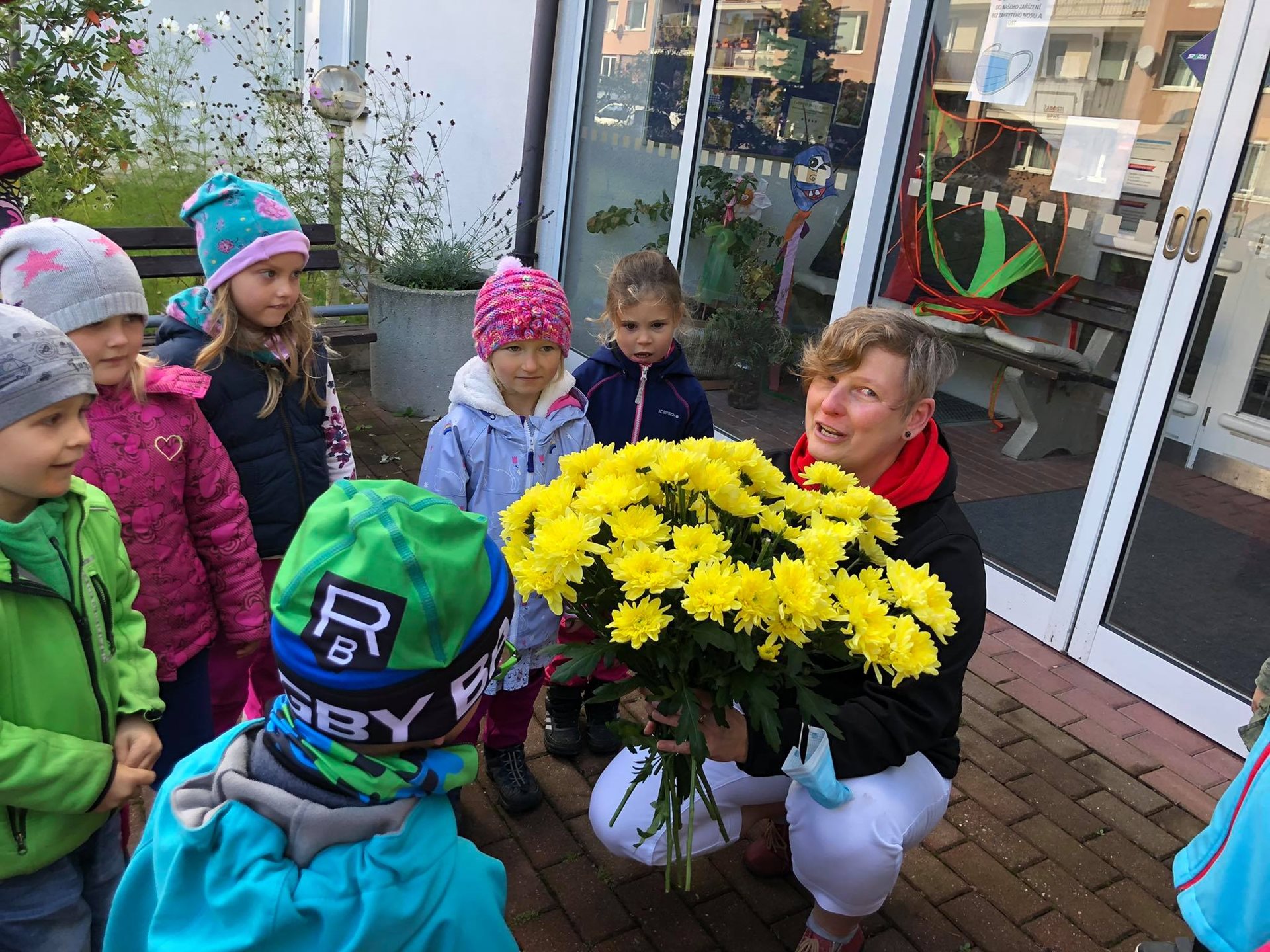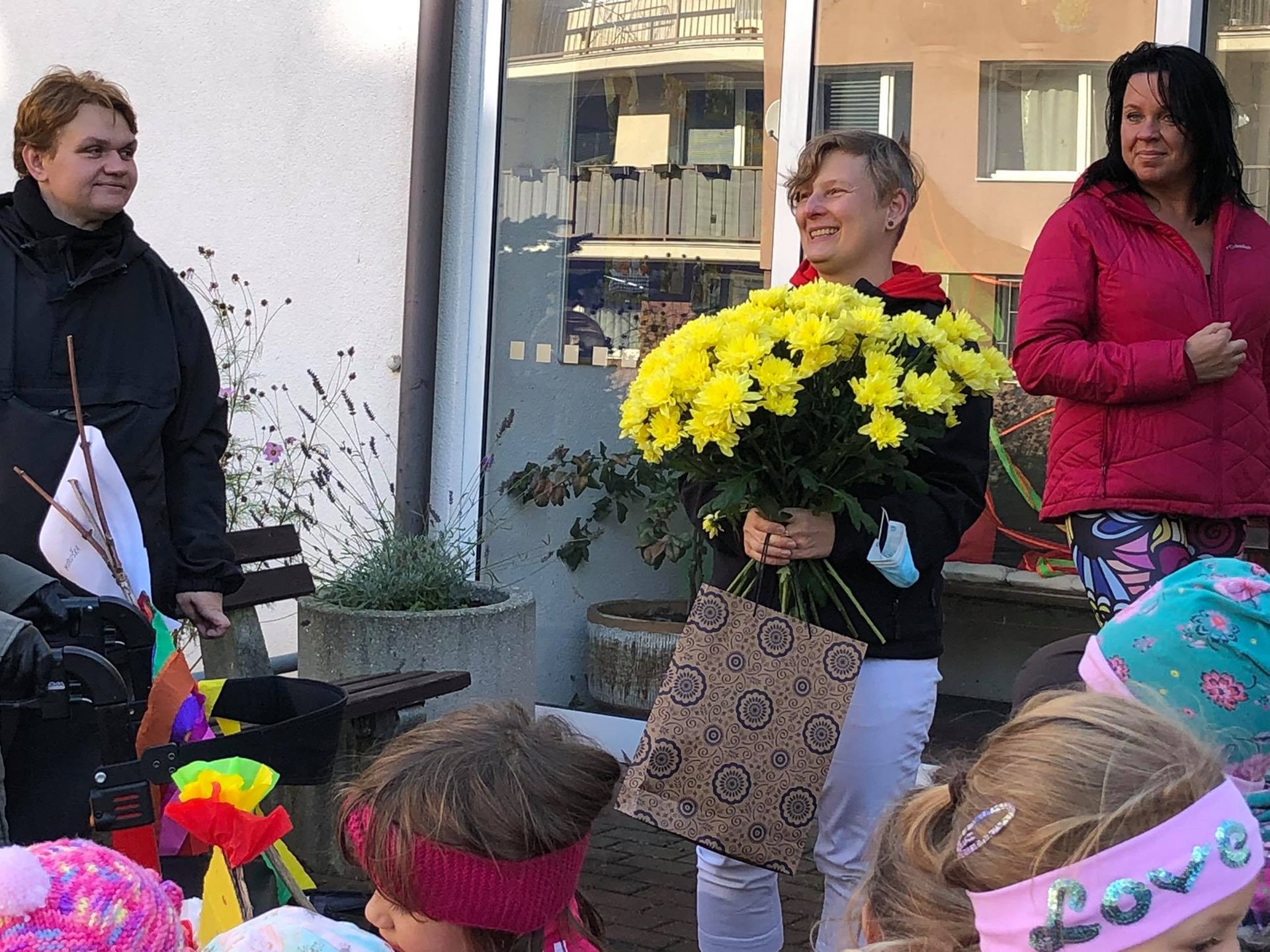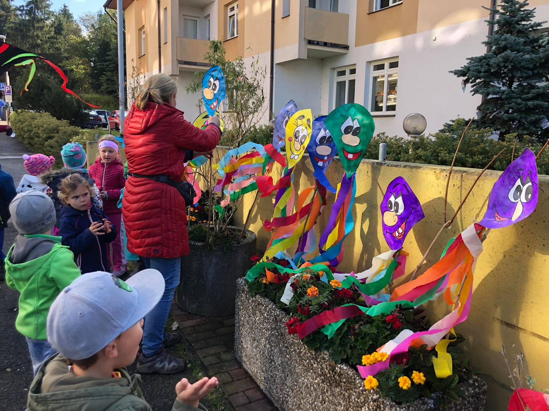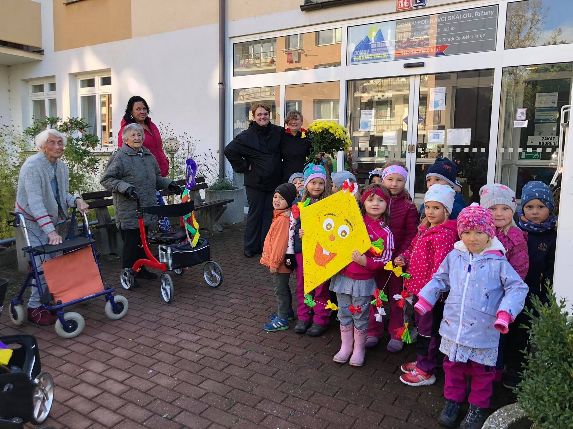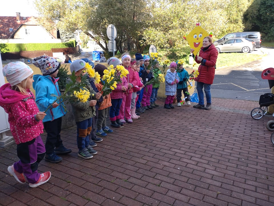 Závěr drakyády byl trochu osobní a velmi emoční. Děti popřály s náručemi plnými květin naší aktivizační Veronice, která právě dnes oslavila krásné kulatiny a kterou mají moc rády. Hodně legrace a zábavy, pár slziček dojetí a spousta vzájemnosti a lásky. To bylo naše dnešní dopoledne. Víc takových. :-)
