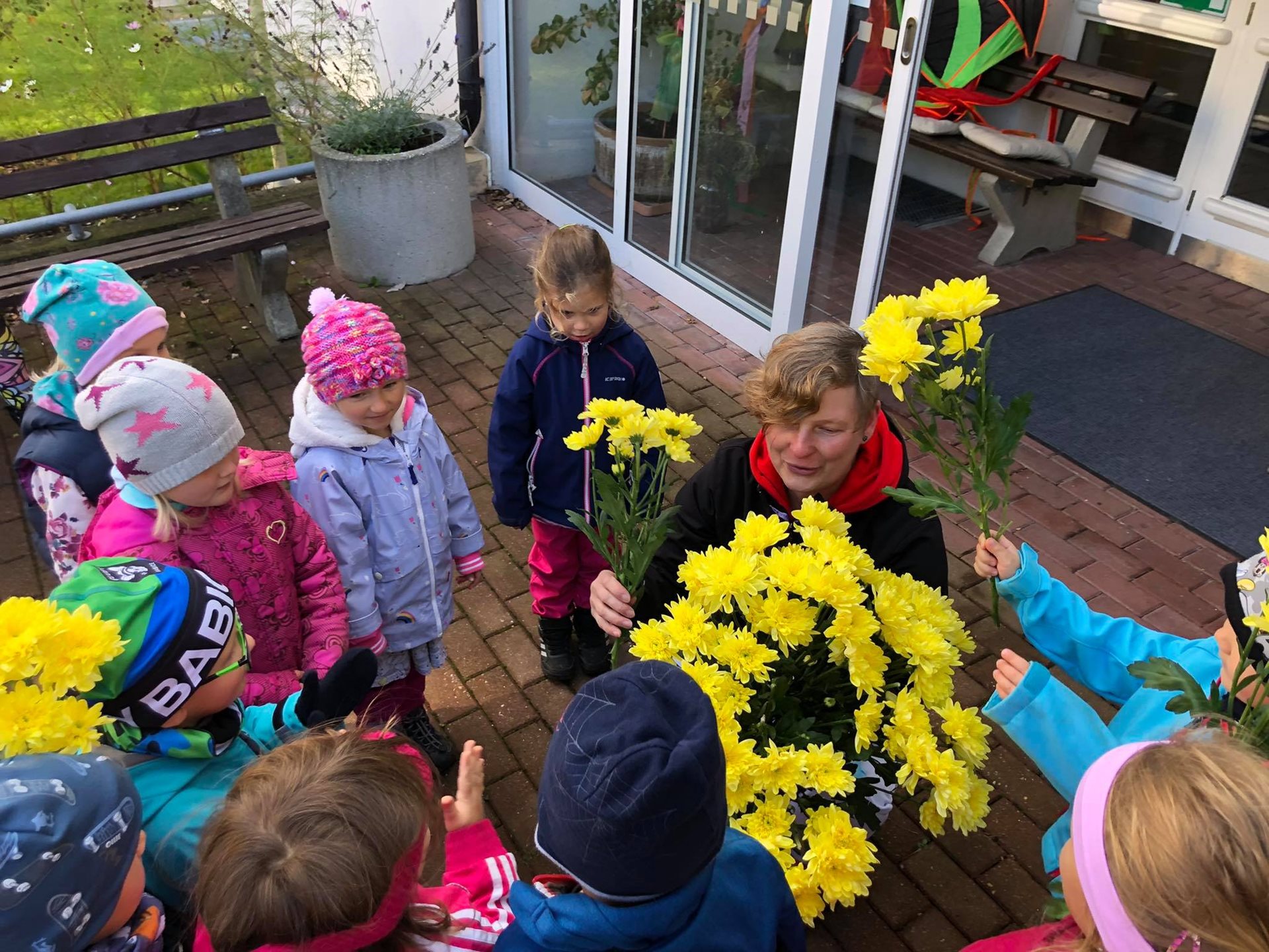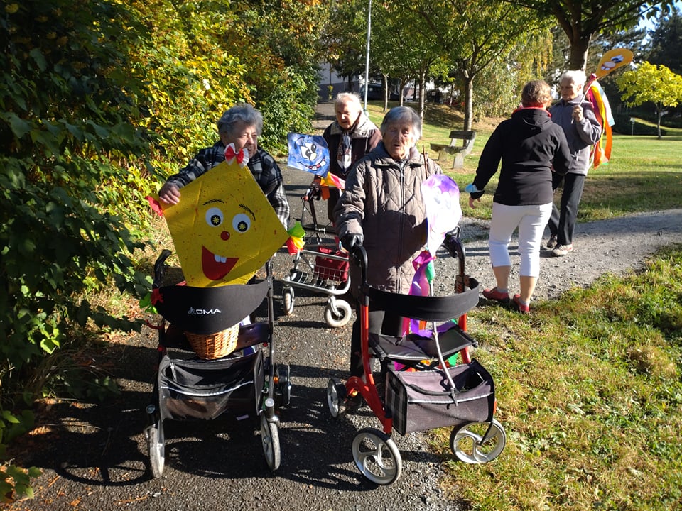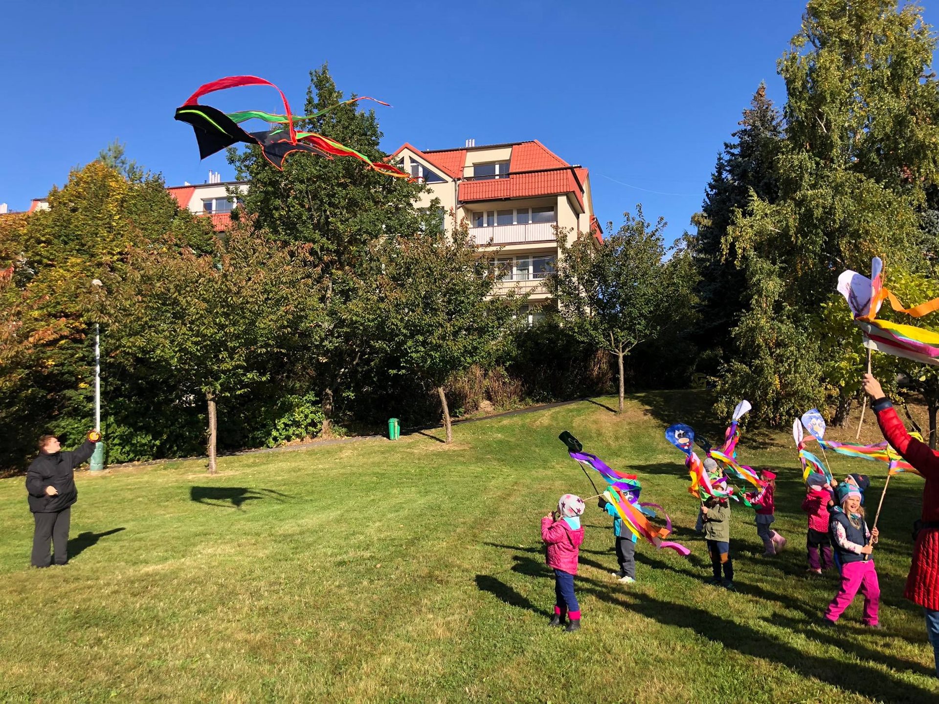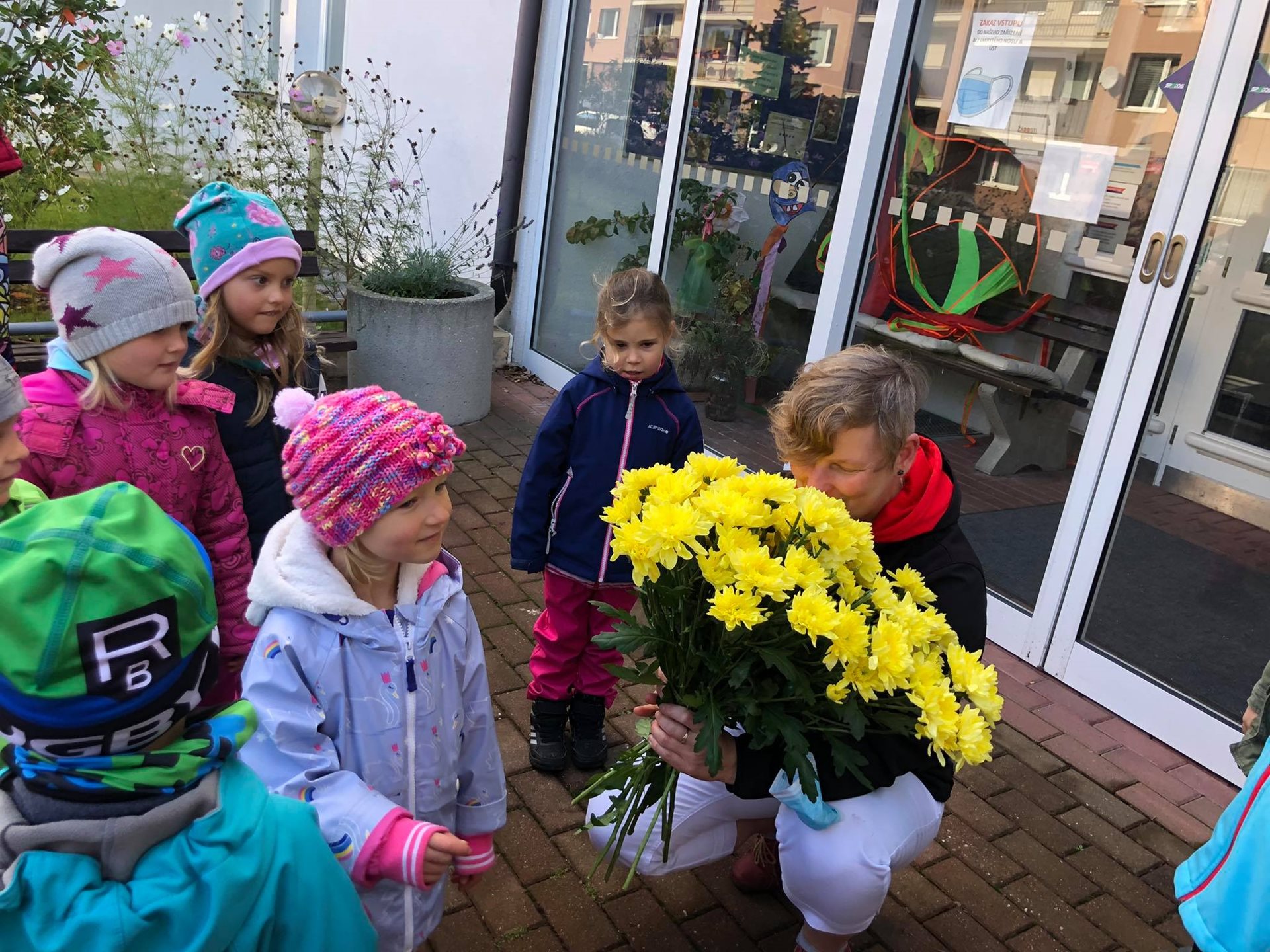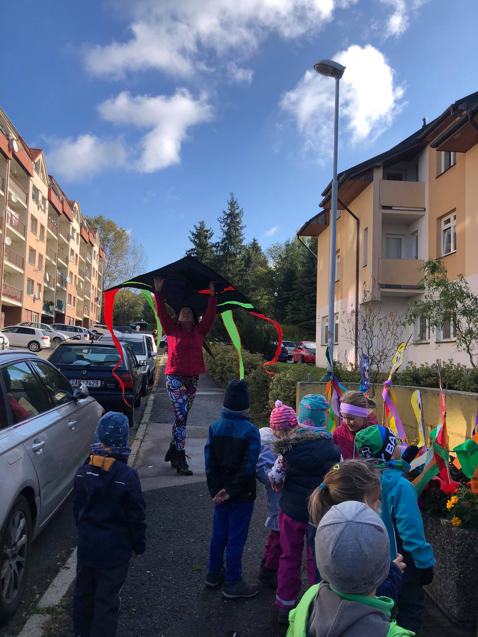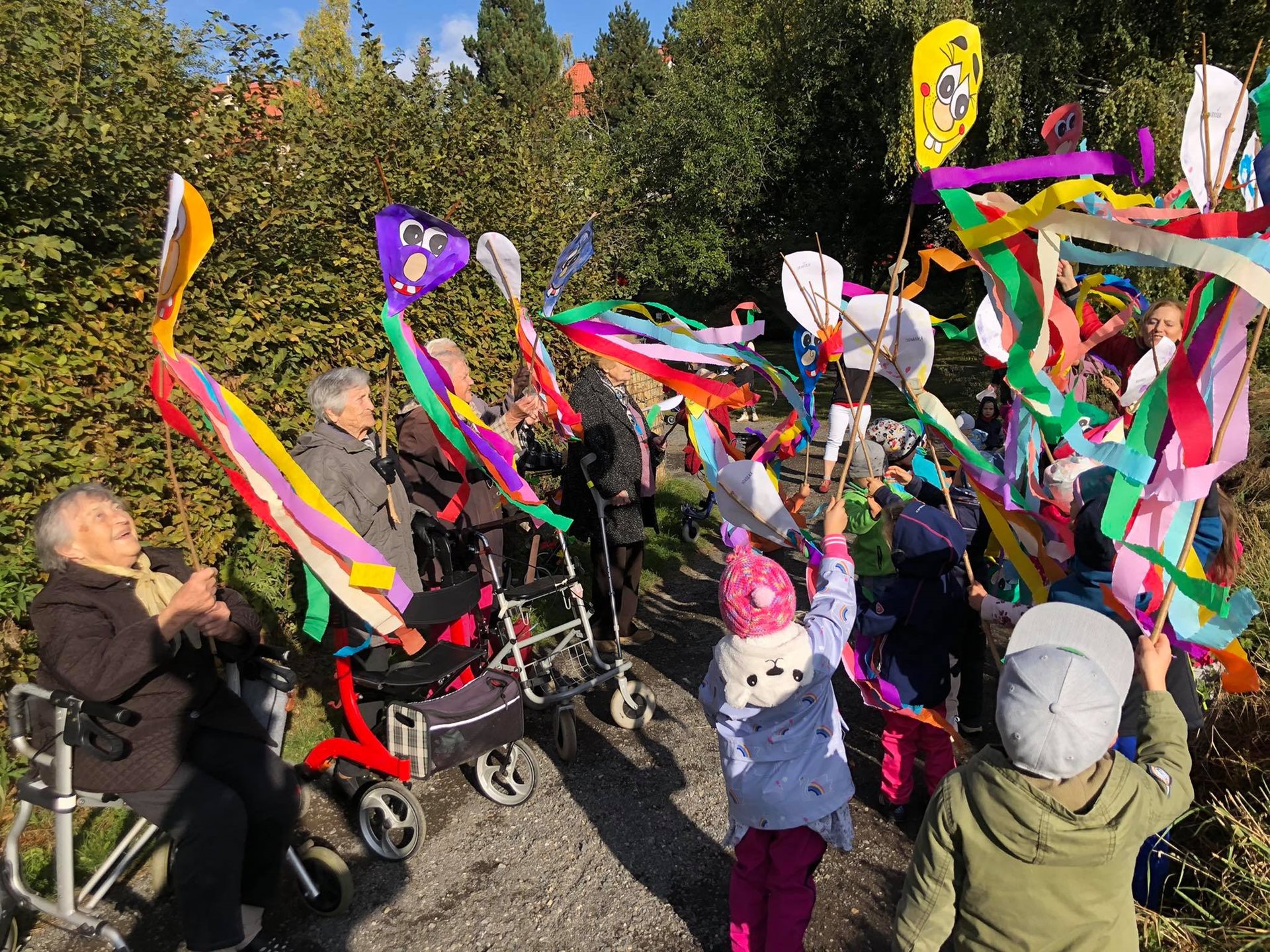 Závěr drakyády byl trochu osobní a velmi emoční. Děti popřály s náručemi plnými květin naší aktivizační Veronice, která právě dnes oslavila krásné kulatiny a kterou mají moc rády. Hodně legrace a zábavy, pár slziček dojetí a spousta vzájemnosti a lásky. To bylo naše dnešní dopoledne. Víc takových. :-)