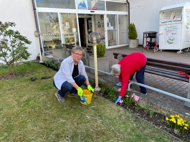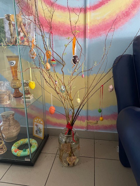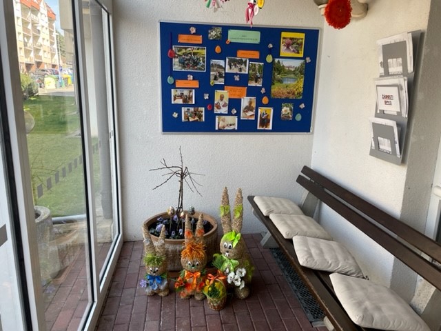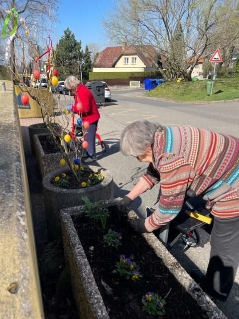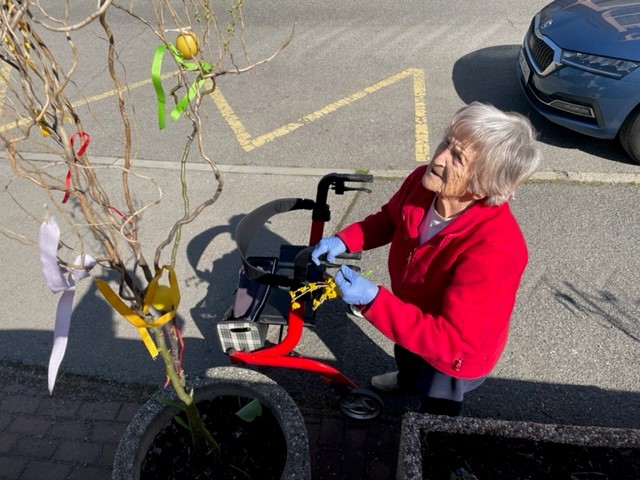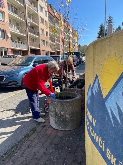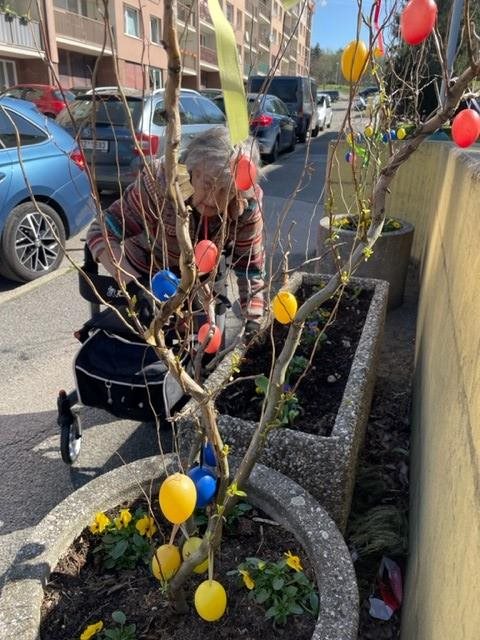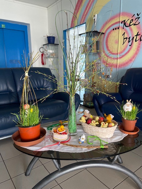 Předvelikonoční úklid nás dokonce i bavil, protože společná vize našeho hlavního vchodu bez listí a bez plevele se nám líbila. Trocha jarní dekorace a radost byla na světě.