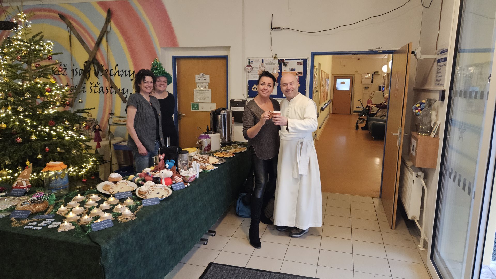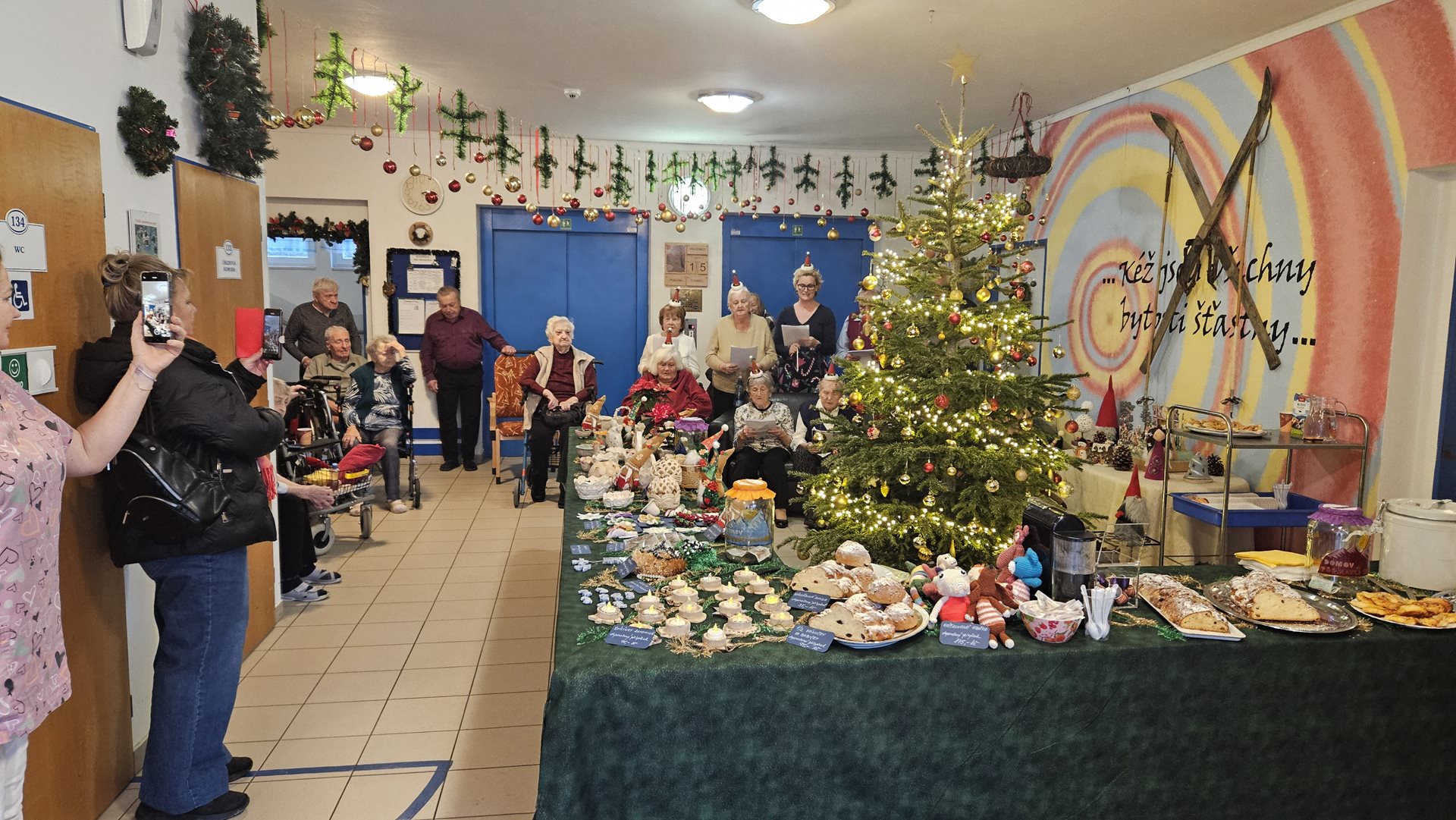 Hlavní hala Domova byla na tuto událost patřičně vyzdobena a všichni naši návštěvníci přivítáni vánočním punčem nebo voňavým čajem.