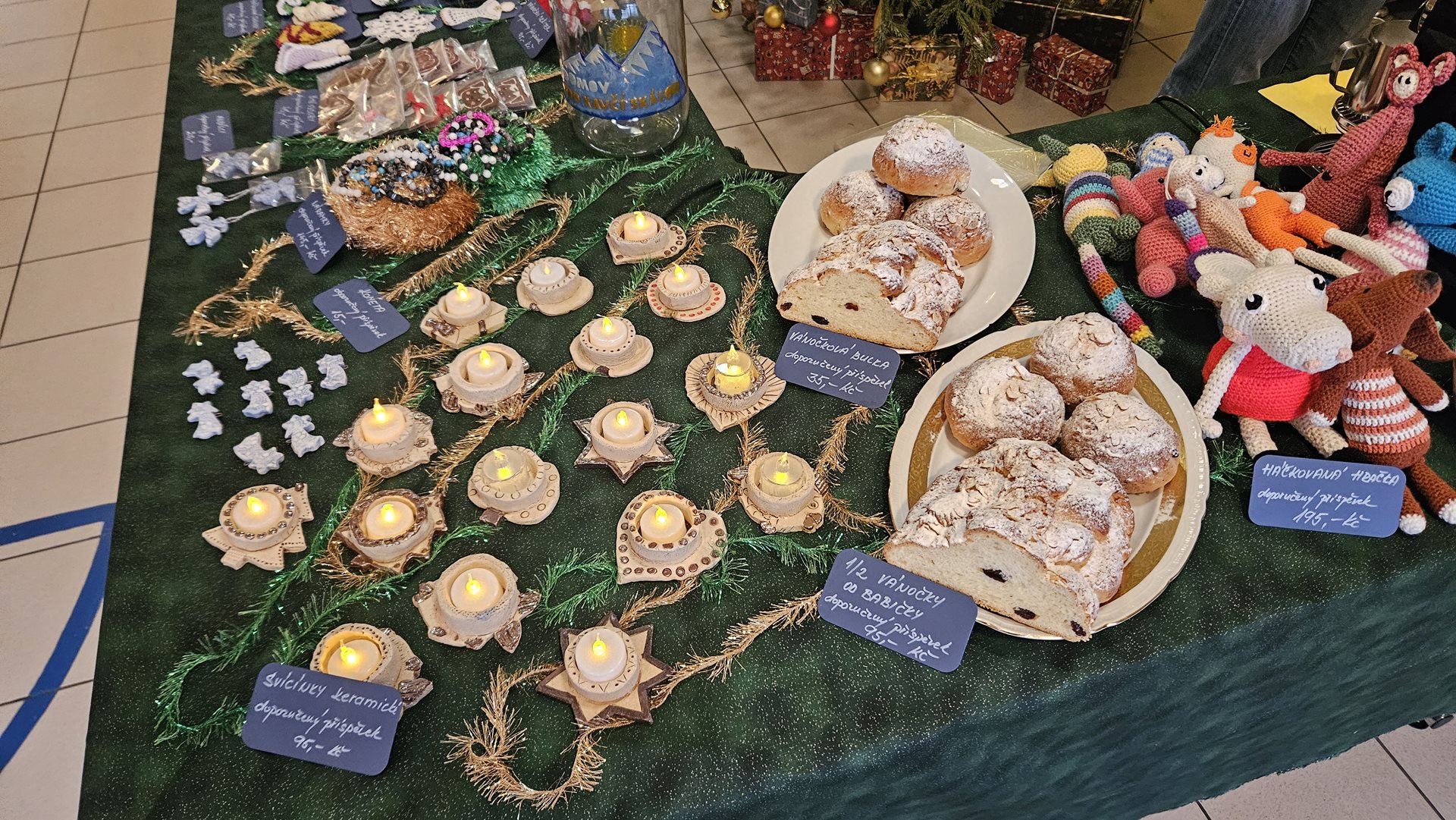 Naši klienti se pečlivě připravovali na zahájení Jarmarku a zpříjemnili tuto událost pásmem vánočních recitací a koled. Velikou radost nám udělalo, že našemu snažení požehnal i pan farář a že nakonec neodmítl kousek poctivé domácí vánočky. I když se v počátku velmi bránil. :-)