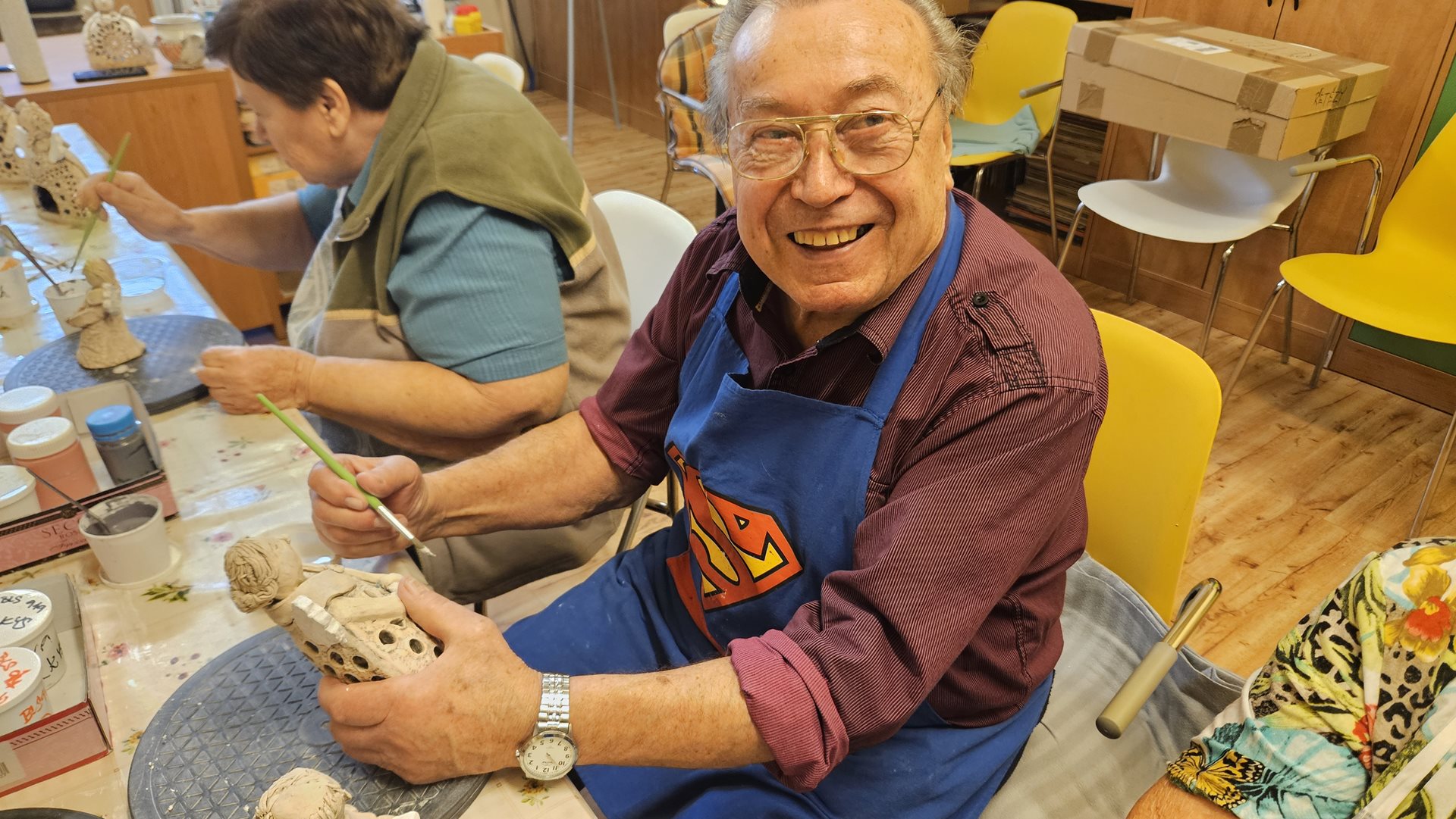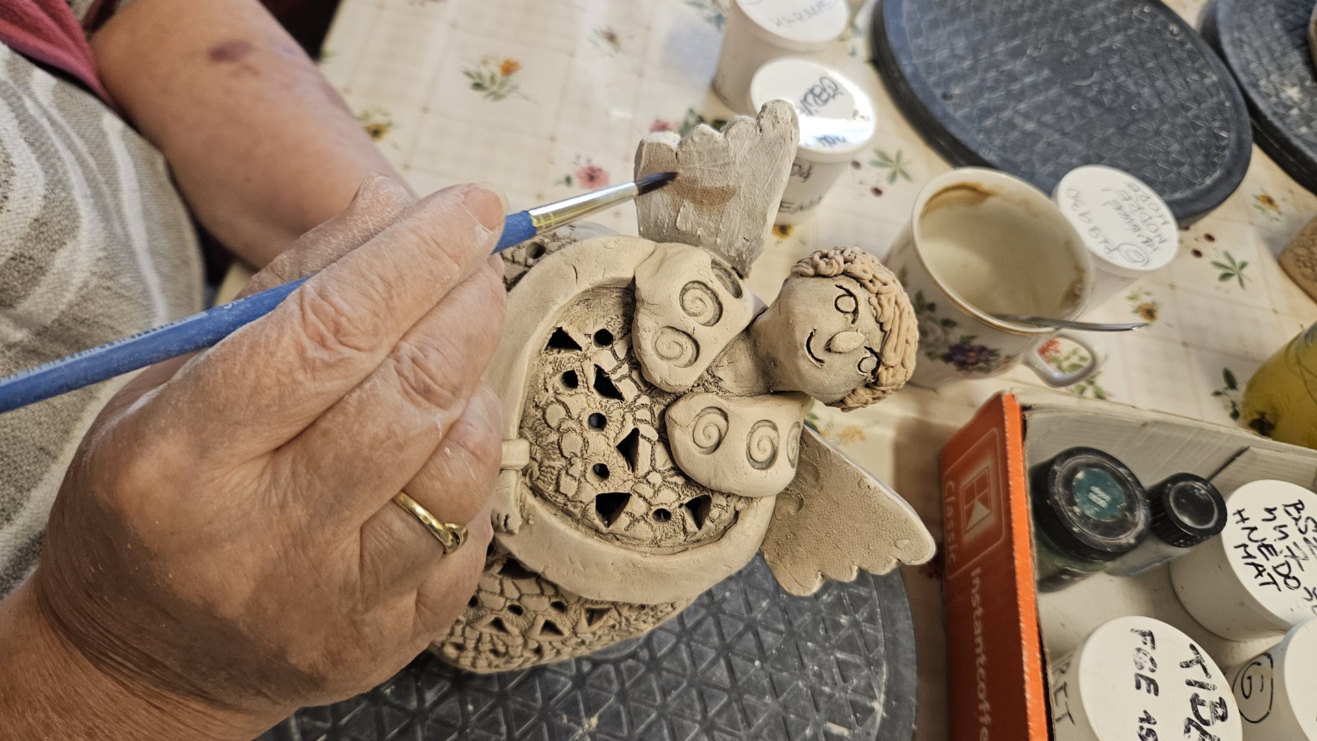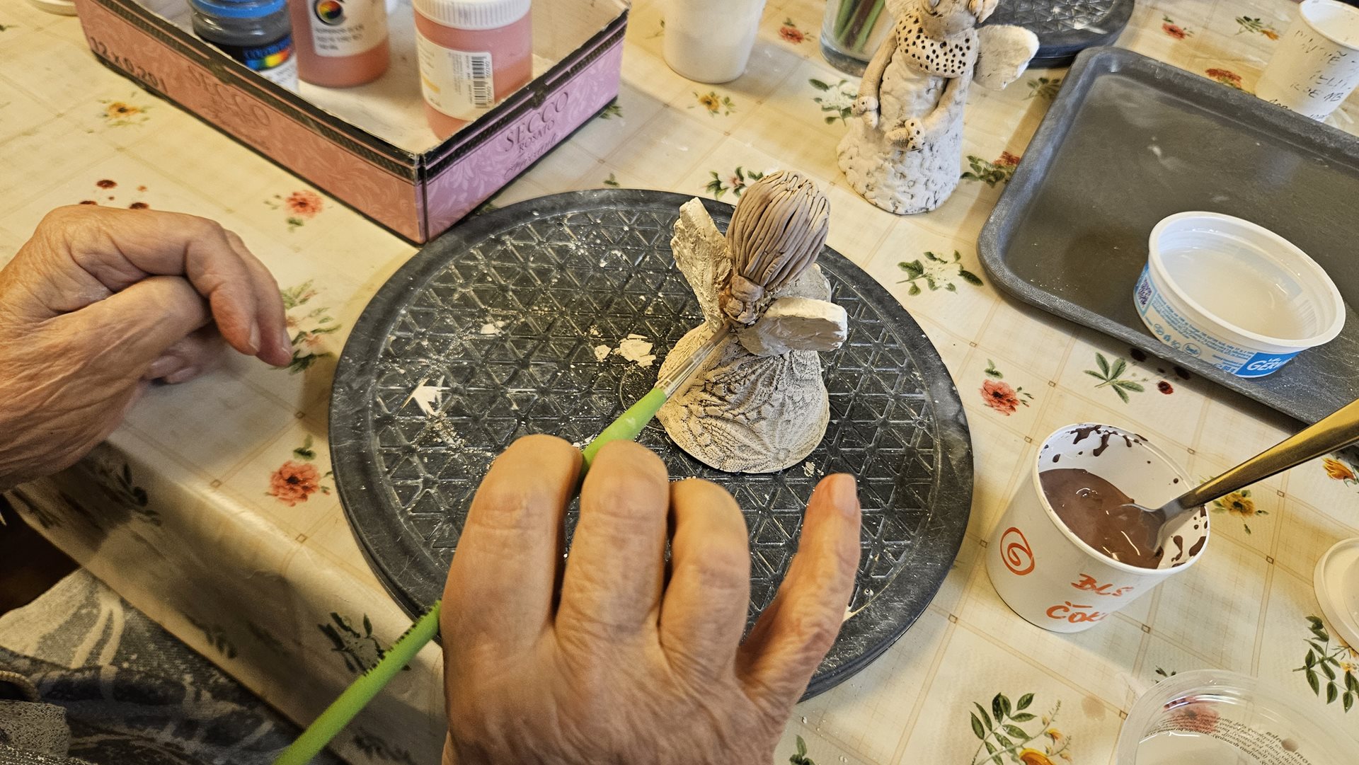 Keramickou dílnu otevíráme pravidelně 2-3 krát do měsíce a schází se nám v ní už ustálený počet nadšenců. Pod vedením zkušené výtvarnice Romany vznikají dílka, která by si právoplatně zasloužila místo na stáncích vánočních trhů. A tak jsme dostali nápad. Jeden takový si v prosinci uděláme. A představíme tam nejen výrobky z keramiky, ale i z ostatních výtvarných kroužků a aktivit. Z korálkování, z háčkování, z kuchyně. A tak se na to se začínáme se vší vervou chystat. A klienti se těší, že výsledky jejich práce při hodinách aktivizace uvidí nejen jejich spolubydlící a rodinní příslušníci, ale i zaměstnanci, děti a rodiče z mateřské školky, naši podporovatelé z Centra Na Fialce i z města Říčany a lidé z blízkého okolí. Sledujte náš web. S termínem za Vámi brzy přijdeme.