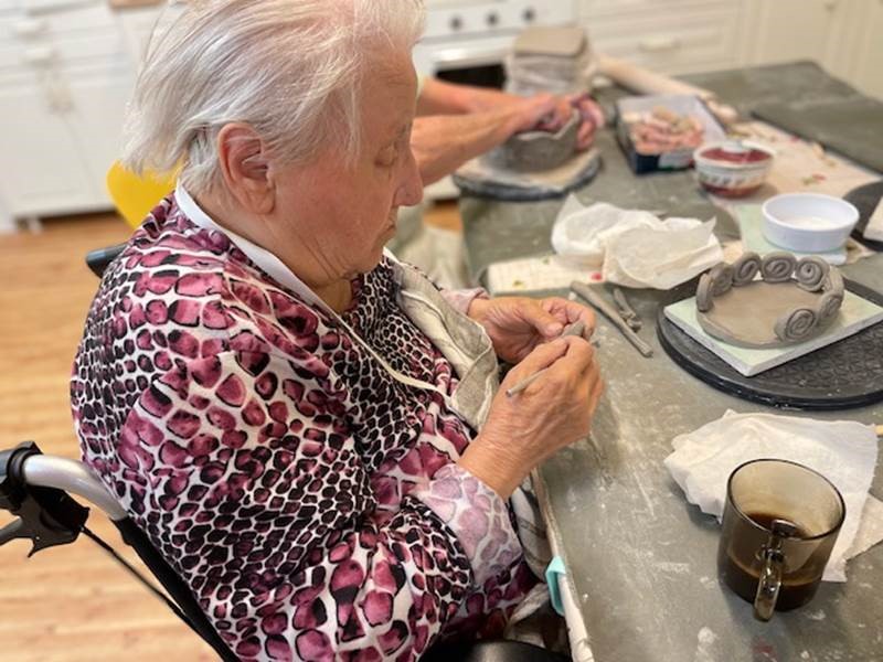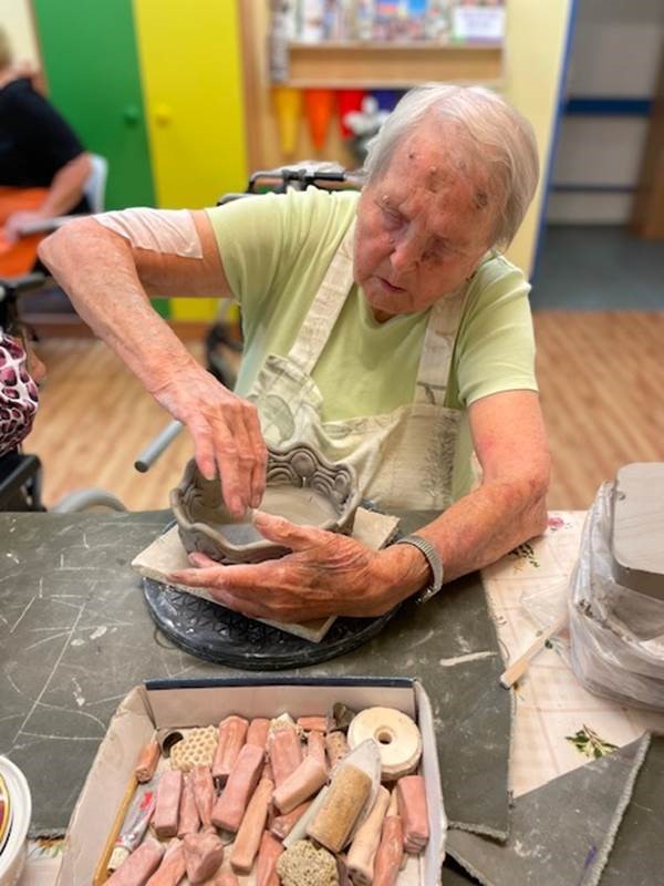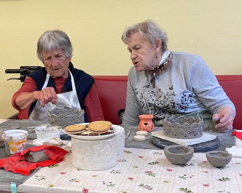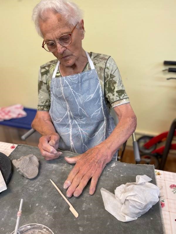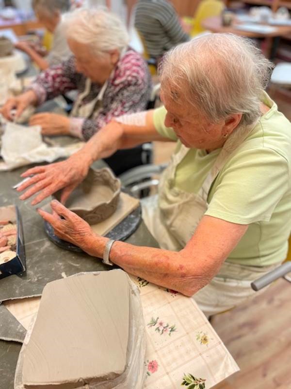 Od začátku měsíce června k nám každé úterý jezdí paní keramička a oživuje naši keramickou dílnu. Celodenní program vždy uteče jako voda. Klienti se na každé úterý velmi těší. Ačkoliv pracují celý den, jakoby neznali únavu. Tak moc je to baví. A jejich keramické výtvory jsou každé další setkání za setkáním zdařilejší a zdařilejší.