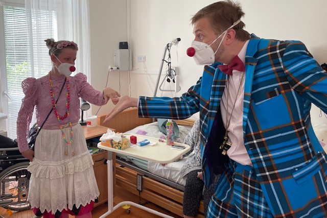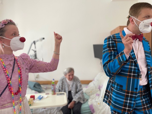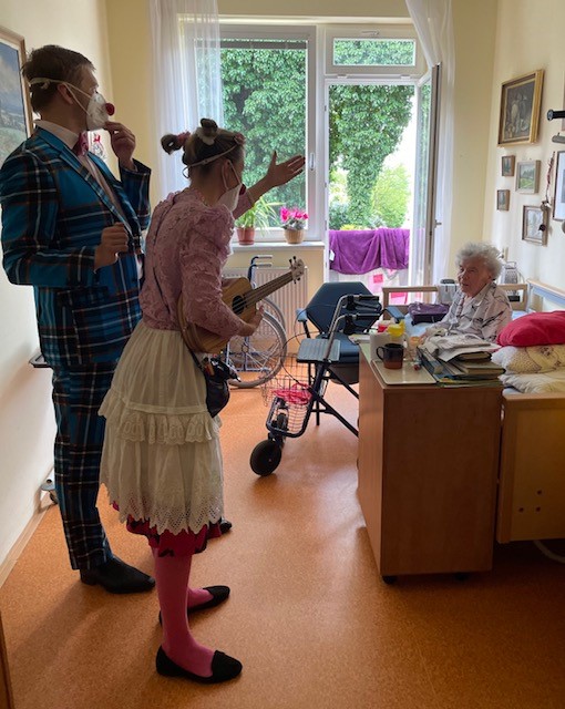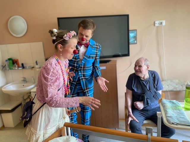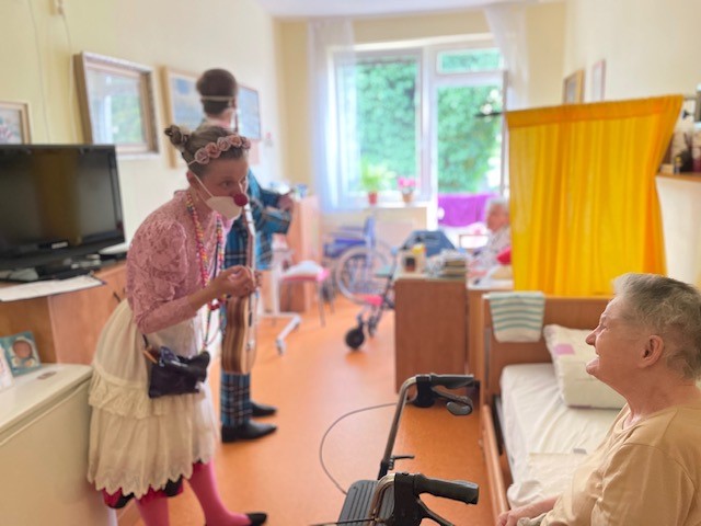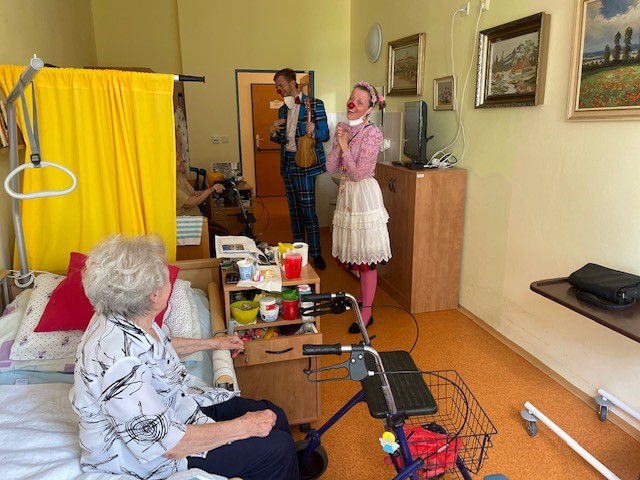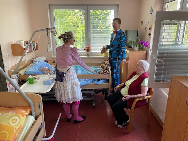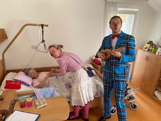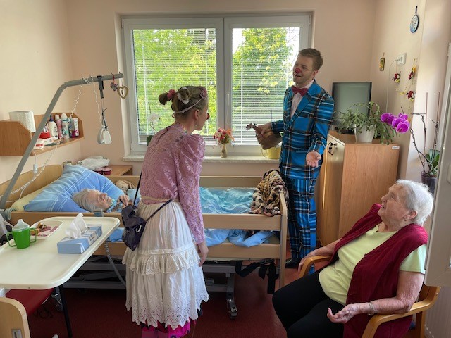 Srdeční klauni s obrovským respektem a pokorou přinesli klientům smích a radost.