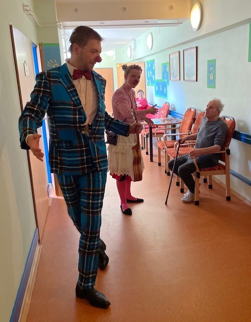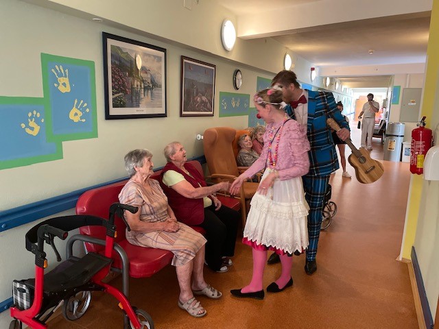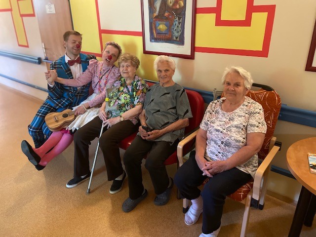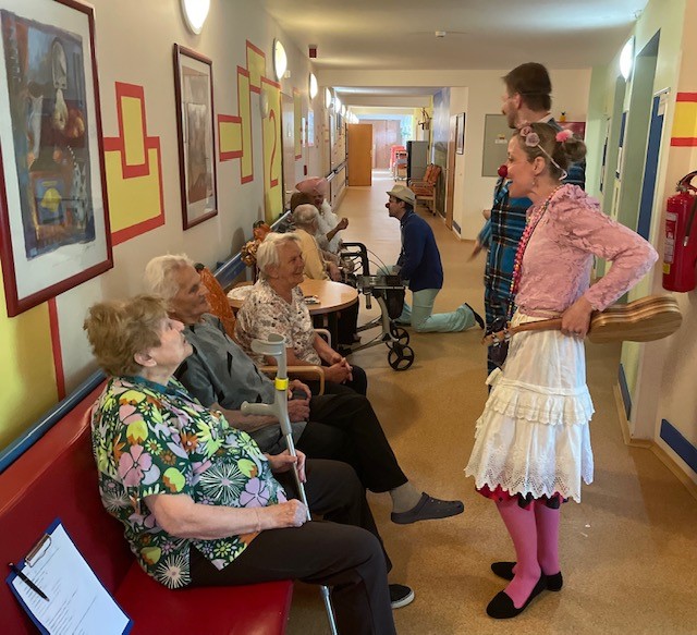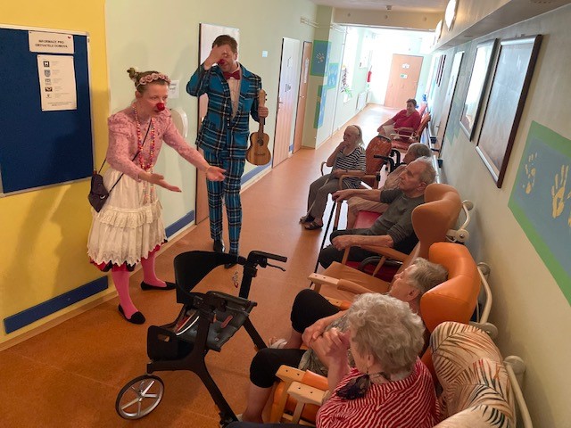 v odpoledních hodinách. Klauni dorazili celkem čtyři. Návštěvy klaunů probíhaly individuálně na pokojích a nebo dělali veselo na chodbách, kde na ně klienti čekali.