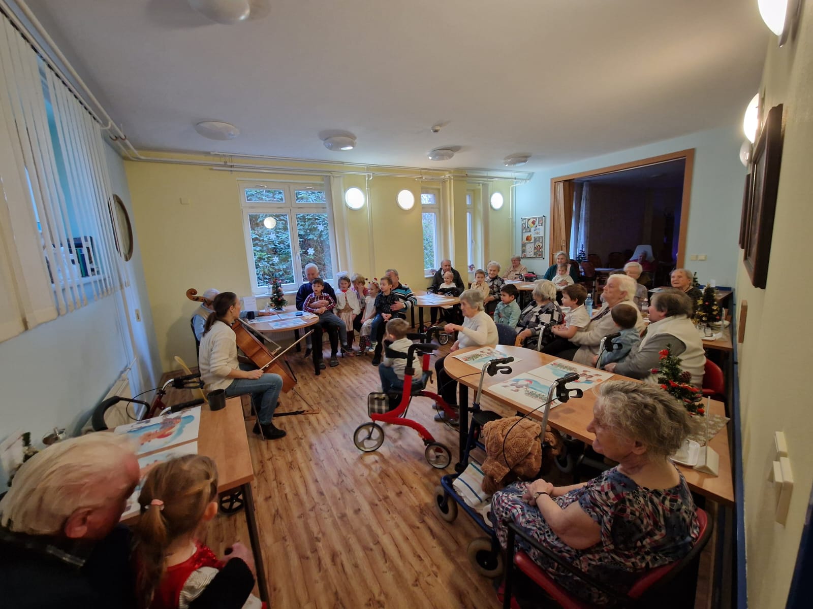 Tradici vítání každé adventní něděle jsme dodrželi i letos. Navíc jsme ještě odpoledne před nadcházejících čtvrtým adventním víkendem uspořádali v domáckém duchu Besídku společně s dětmi z MŠ Čtyřlístek s komorním koncertem s několika tradičními kousky z repertoáru vážné hudby. Byla to také možnost, jak si společně se Zajíčky popřát hezké svátky a poděkovat za velmi příjemnou a plodnou spolupráci v rámci mezigeneračního setkání v celém roce. Jsme moc rádi, že se máme. Vzájemně.