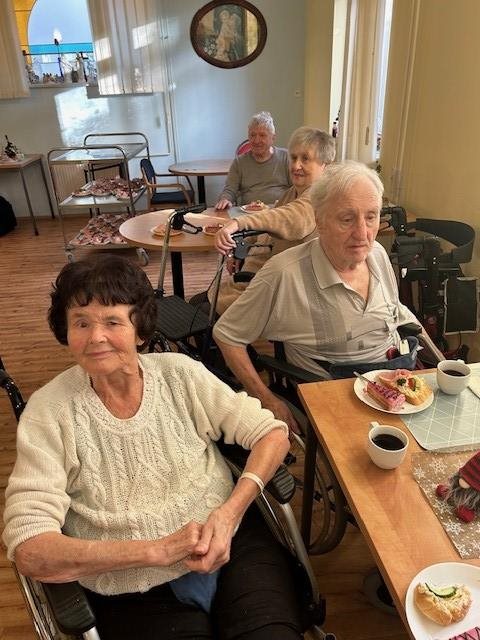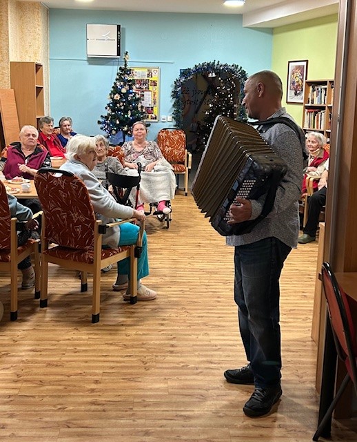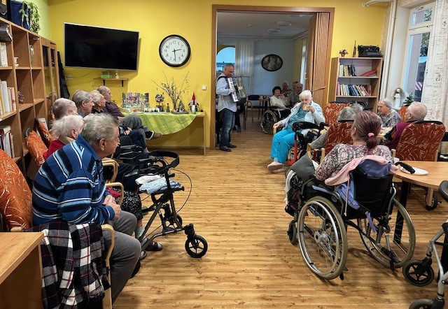 Slavili jsme narozeniny čtyřech našich klientů a protože Vánoce byly za dveřmi, tak se oslava nesla v duchu vánoční hudby a koled. Ale nejen těch. Zazněly i moravské písně, zahrát a zazpívat nám přijel oblíbený harmonikář Karel Kekeši. Klientům jsme podávali i malé pohoštění - chlebíček a oblíbený punčový dort a svařené víno. Oslava probíhala ve velmi příjemné atmosféře.