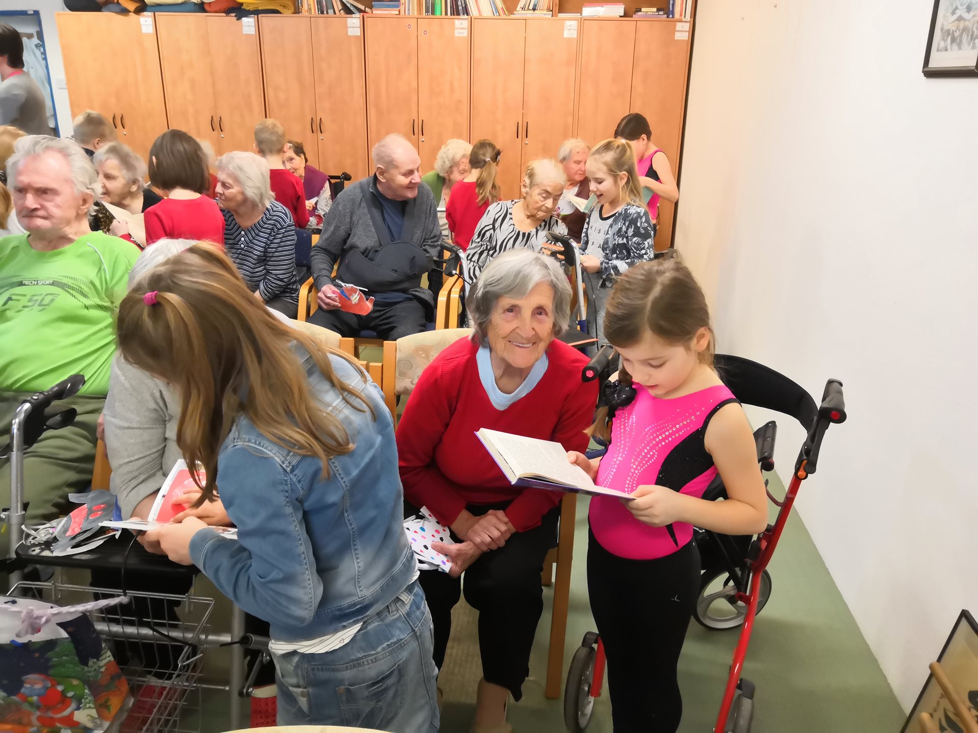 Novoroční vystoupení ZŠ U Říčanského lesa (hudba, zpěv, tanec a předčítání našim seniorům) navazuje na mezigenerační setkávání s MŠ Čtyřlístek. Naši klienti mají možnost vidět děti již ve školním věku a těšit se společně s nimi z jejich školních i soukromých úspěchů. Stará přátelství přetrvávají.