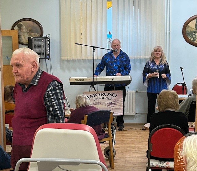 Lednových oslavenců je skutečně hodně. V tomto měsíci slaví narozeniny deset klientů. Narozeninovou oslavu nám zpestřilo duo Amoroso a klienti si s nimi rádi zazpívali. Děvčata z kuchyně pro klienty připravila pohoštění a upekla domácí metrový dort. Skutečně není nad domácí kuchyni, dort neměl chybu. Klienti byli nadmíru spokojení.