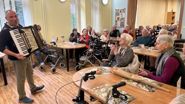 Jako každý měsíc jsme se hromadně sešli při dobrém pohoštění, abychom společně oslavili narozeniny klientů, kteří se narodili v tomto měsíci. Slavili jsme při vystoupení oblíbeného muzikanta a baviče Karla Kekešiho, který dokáže zapojit do zpěvu snad každého účastníka. V březnu se nám sešlo hned 5 oslavenců a nálada byla výborná. Tentokrát jsme měli i zákusky naprosto skvělé. Kuchyně nám připravila domácí řezy Míša a žloutkové řezy. Moc děkujeme, všem opravdu chutnalo. Není nad domácí stravu.