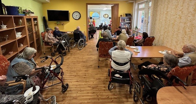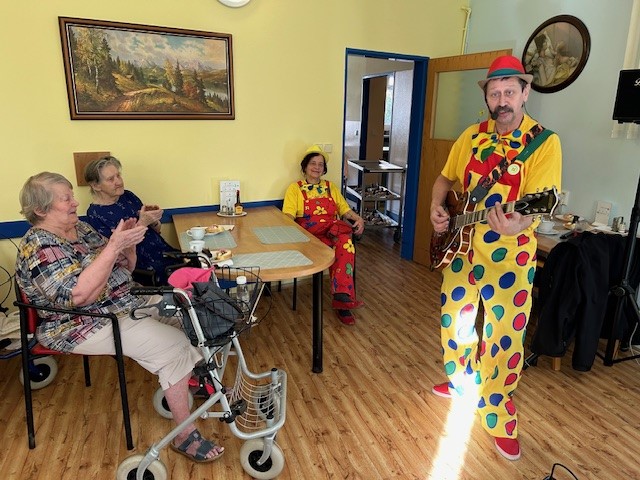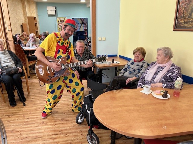 Každý měsíc slavíme narozeniny. Únoroví zrozenci byli nadšeni, že tentokrát přijel zahrát a pobavit oblíbený Pavel Justich, dokonce i s milou dámskou posilou. Pavla Justicha můžete pravidelně vídat nejen při komorních akcích v zařízeních jako je to naše, ale i například v KC Labuť při veřejných produkcích a setkáních seniorů s hudbou. Pan Justich se zaměřuje spíše na písně z 60 až 90 let a to mají naši klienti moc rádi. Hraje i na přání a to potom zábava proudí. Únorová oslava byla trochu výjimečná. Po domluvě s námi přišla popřát jedné z klientek celá rodina a vnučky napekly jablečné záviny nejen pro svou babičku, ale pro všechny naše klienty. Občerstvení při oslavě bylo tudíž tentokrát hezky obohacené. Klientka byla velmi potěšená a dojatá. A my všichni ostatní měli velkou radost. Byla skvělá atmosféra a oslava se nám oproti běžným zvykům pěkně protáhla. Všichni se náramně dobře bavili.