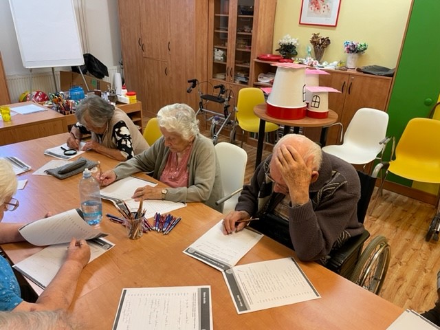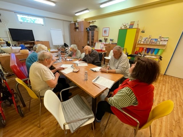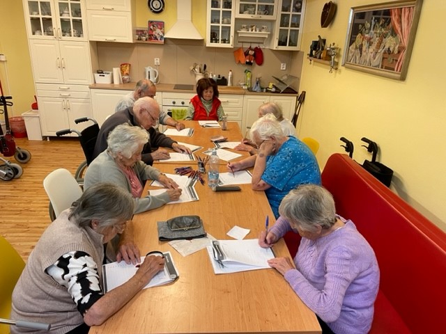 Je to radost, pozorovat, jak to naše klienty baví a jak jsou soustředění. Pravidelně nejméně jednou za 14 dní se potkáváme a trénujeme paměť a kognitivní dovednosti. A účast bývá vždy početná. Je to jedna z nejoblíbenějších společných aktivit.