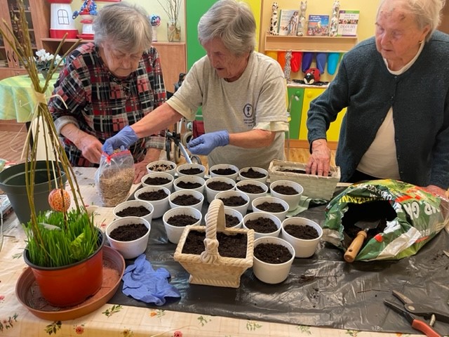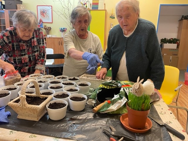 Na svátky jara se moc těšíme a pomalu oblékáme Domov do jarních výzdob. V pátek jsme sázeli osení, abychom si ho mohli postavit na každý stůl v jídelně a přinést tak všem obyvatelům atmosféru svátků jara. Z loňské zkušenosti víme, že potřebuje tak týden, aby hezky vzešlo, tak snad budeme mít i letos štěstí.