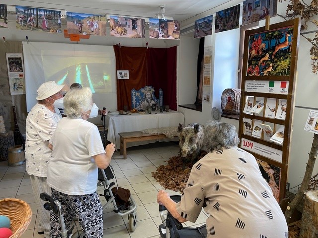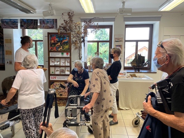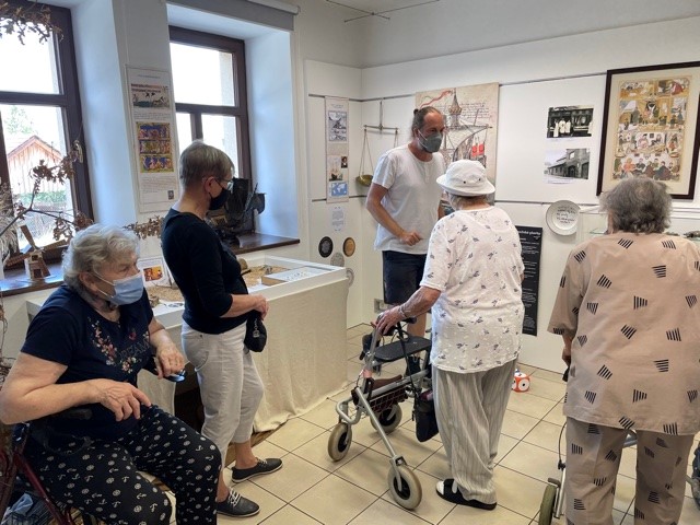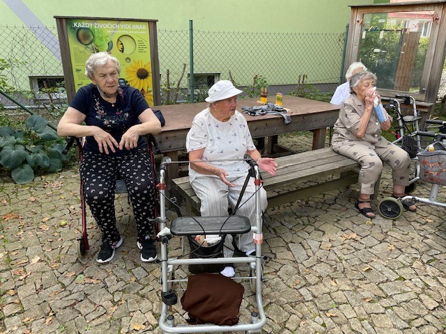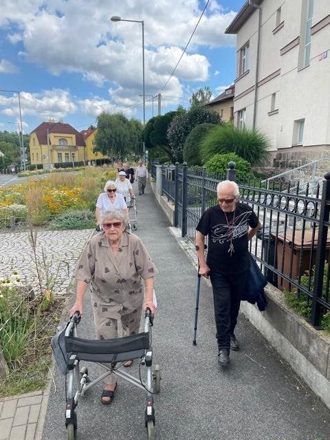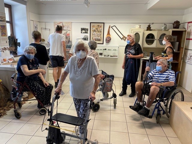 Bylo nás dohromady 9, na výlet se přihlásilo 6 aktivních klientů a naše dvě aktivizátorky s jednou dobrovolnicí se postaraly o bezpečnou a pohodovou cestu. Bylo i příjemné počasí. Po obědě jsme vyrazili procházkou a těšili se na výstavu s názvem "Jídlo napříč stoletími". Vrátili jsme se chvíli před čtvrtou odpolední a menší pauzičky na lavičkách nám pomohly překonat více než kilometrovou vzdálenost k muzeu.