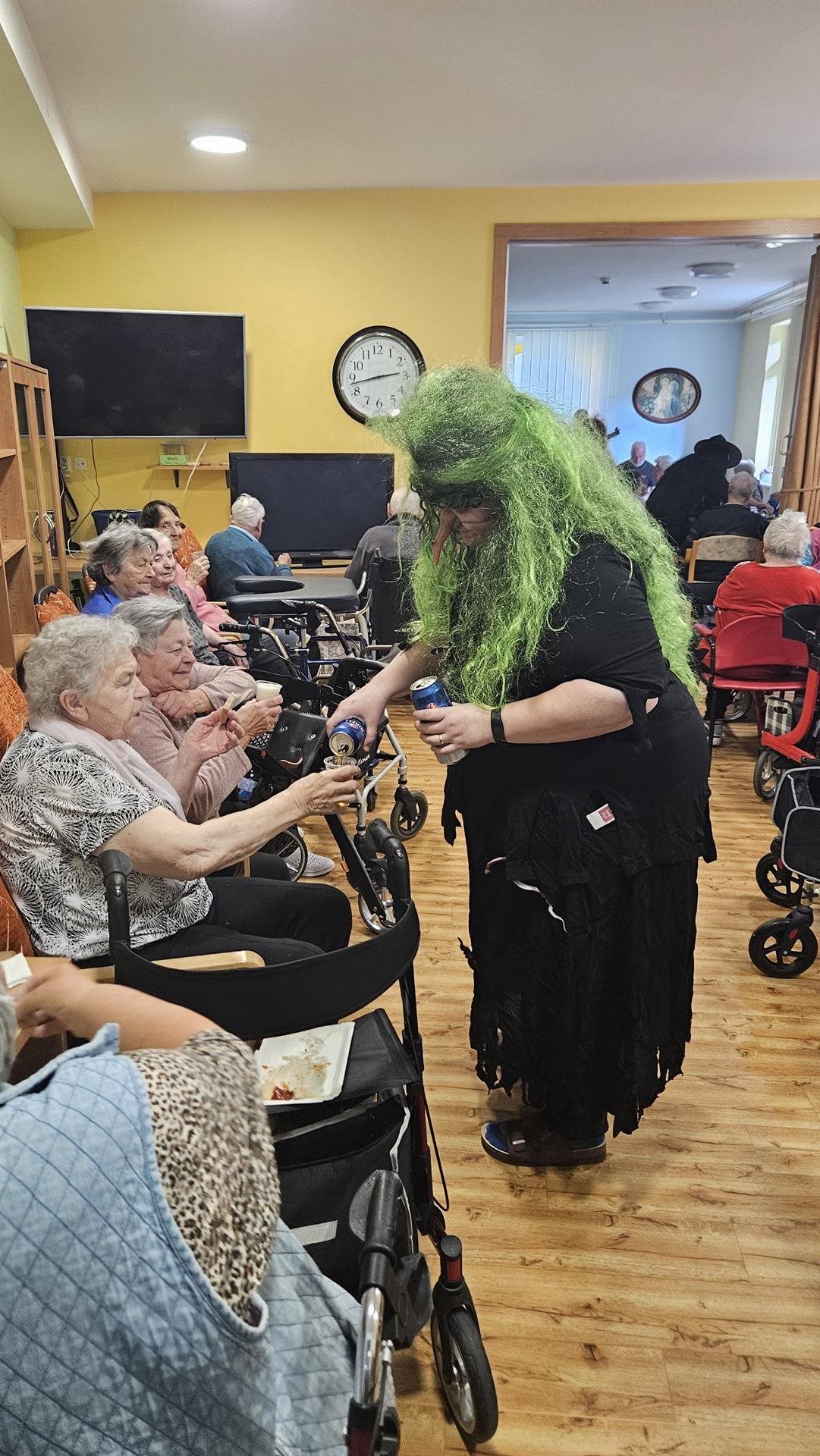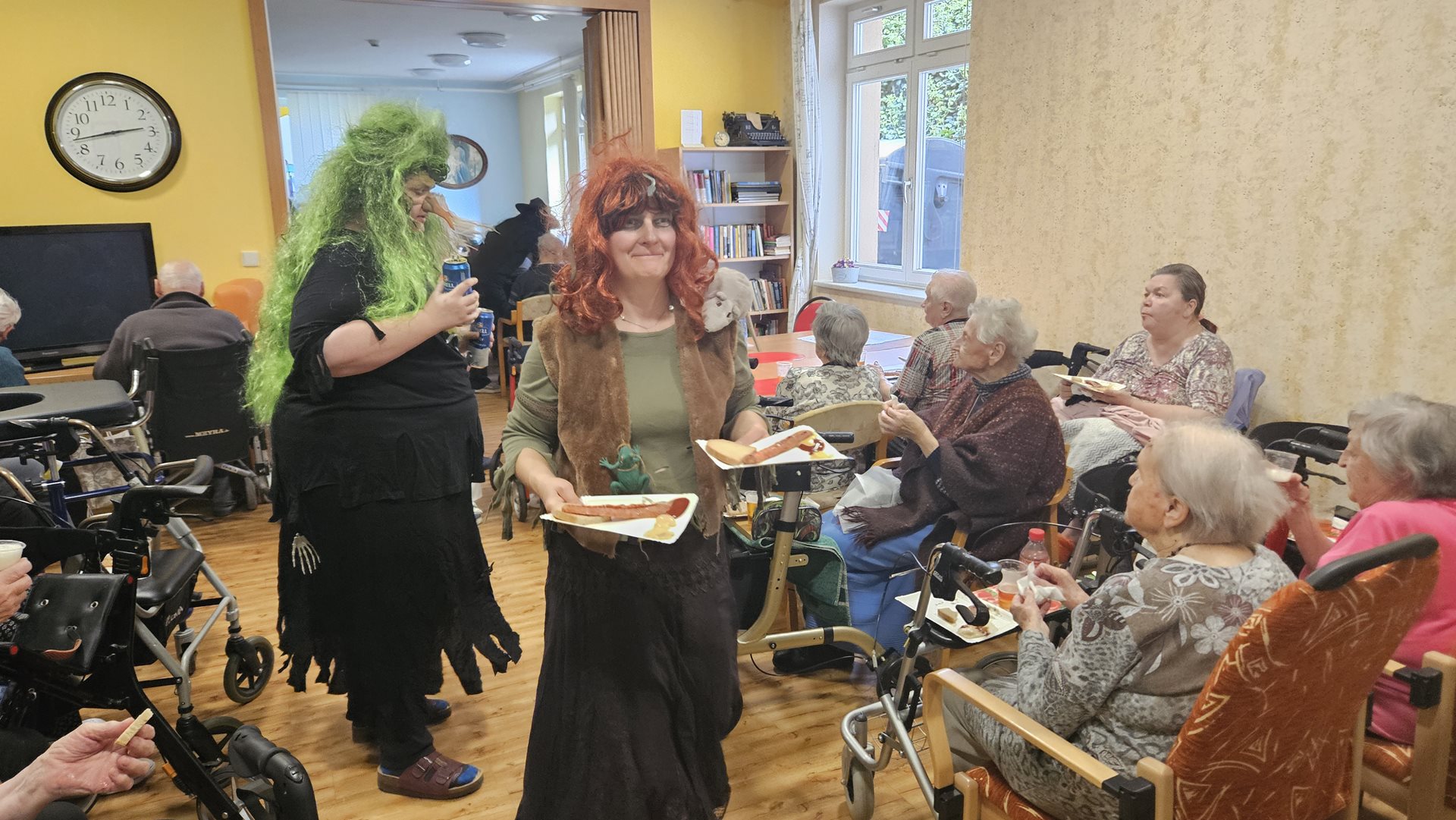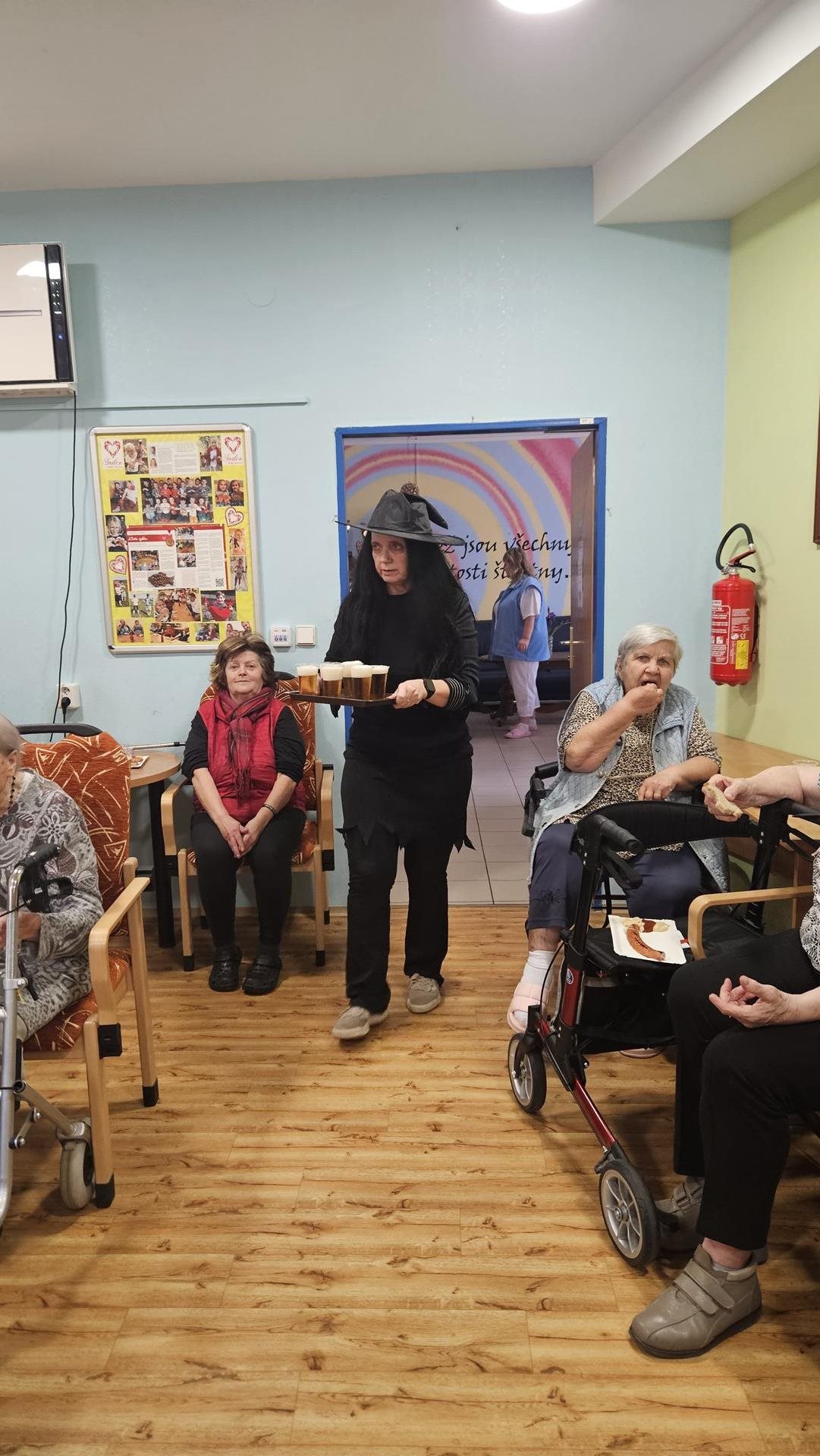 Jako už každoročně jsme se moc těšili na období pálení čarodějnic. Letos jsme tento svátek spojili s oslavou narozenin našich klientů, kteří přišli na svět v dubnu. Původně jsme chtěli Rej čarodějnic a narozeninovou oslavu zrealizovat ve formě zahradní slavnosti, ale ten den nám počasí až tak úplně nepřálo. Na posezení venku byla ještě zima. Připravili jsme pro naše klienty kromě výtečného grilovaného občerstvení i téměř dvouhodinové vystoupení jejich oblíbené kapely SUPer z Čerčan, tak volba byla jasná. Letos jsme oslavili čarodějnice uvnitř. Slavností provázelo pět echtovních čarodějnic, které se místy přimotaly k programu, zatančily s klienty, společně si zazpívaly a pak byly k ruce i při obsluze klientů. Kapela hrála skvěle a na grilovaných párečcích i sýrech si všichni nesmírně pochutnali. Bylo to hezké odpoledne, atmosféra na jedničku. Nakonec to, že jsme byli celou dobu uvnitř, vůbec nevadilo.