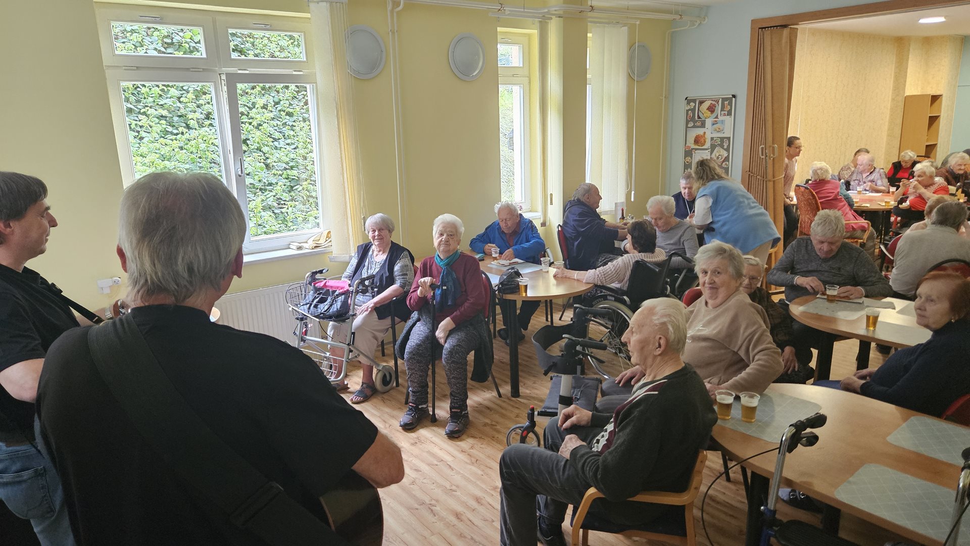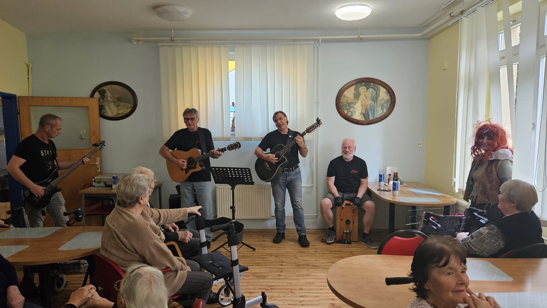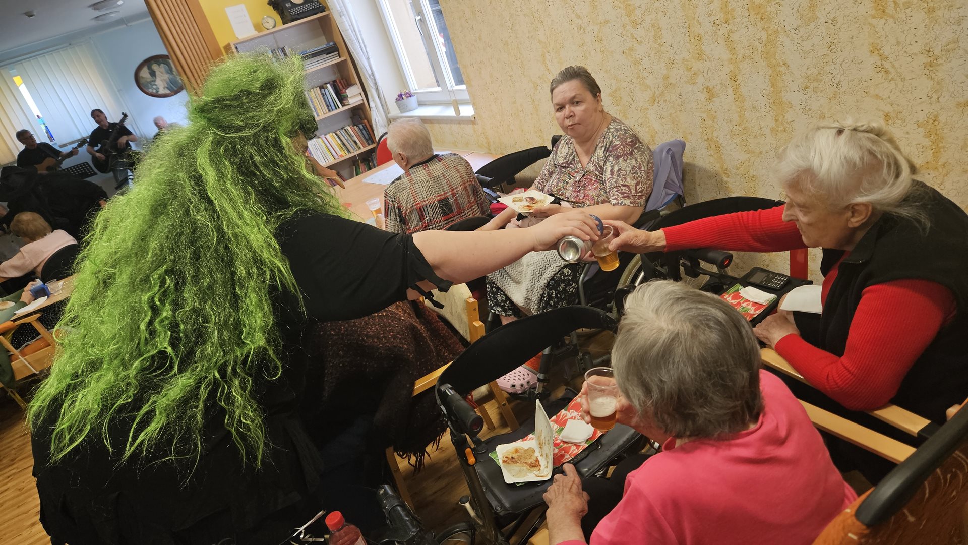 Jako už každoročně jsme se moc těšili na období pálení čarodějnic. Letos jsme tento svátek spojili s oslavou narozenin našich klientů, kteří přišli na svět v dubnu. Původně jsme chtěli Rej čarodějnic a narozeninovou oslavu zrealizovat ve formě zahradní slavnosti, ale ten den nám počasí až tak úplně nepřálo. Na posezení venku byla ještě zima. Připravili jsme pro naše klienty kromě výtečného grilovaného občerstvení i téměř dvouhodinové vystoupení jejich oblíbené kapely SUPer z Čerčan, tak volba byla jasná. Letos jsme oslavili čarodějnice uvnitř. Slavností provázelo pět echtovních čarodějnic, které se místy přimotaly k programu, zatančily s klienty, společně si zazpívaly a pak byly k ruce i při obsluze klientů. Kapela hrála skvěle a na grilovaných párečcích i sýrech si všichni nesmírně pochutnali. Bylo to hezké odpoledne, atmosféra na jedničku. Nakonec to, že jsme byli celou dobu uvnitř, vůbec nevadilo.