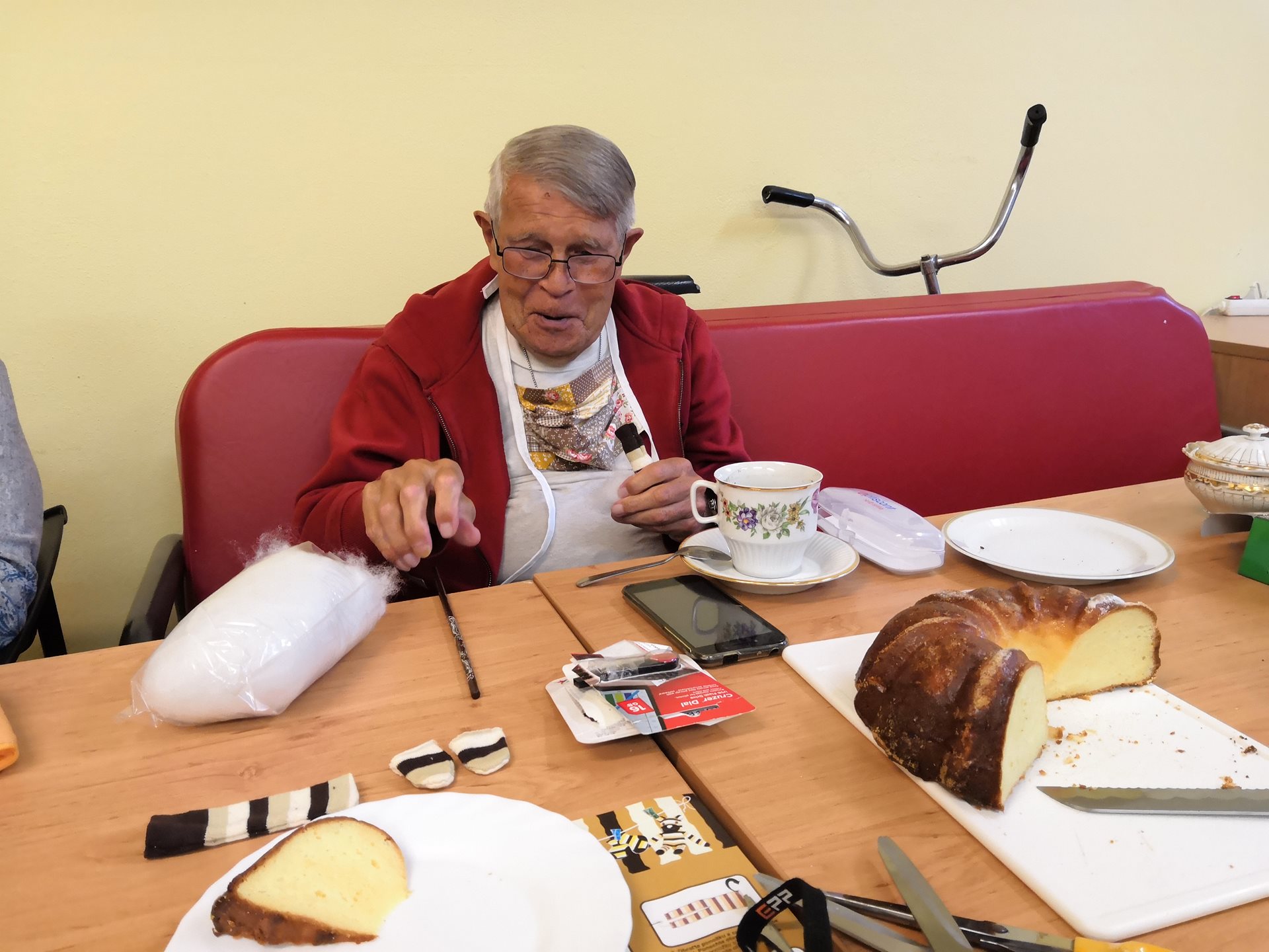 A pochutnáváme si při tom na bábovce, kterou jsme si sami upekli :-)