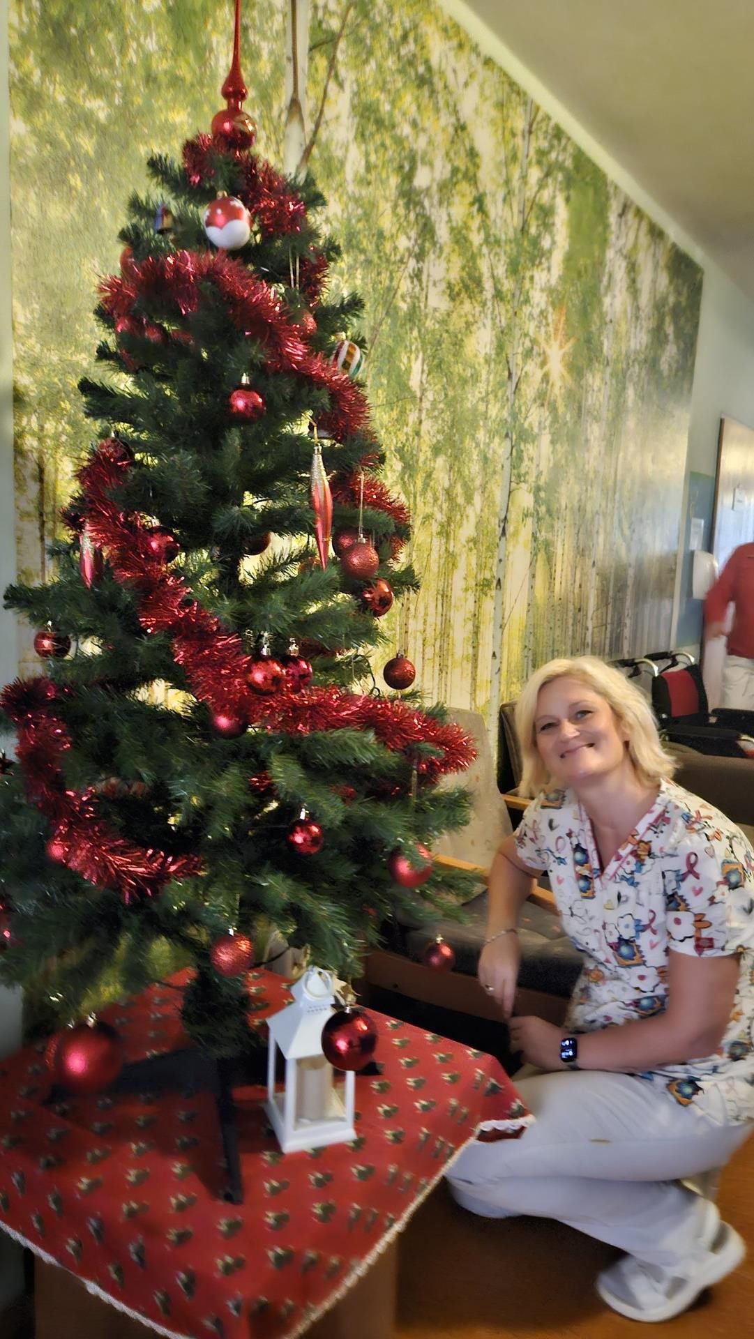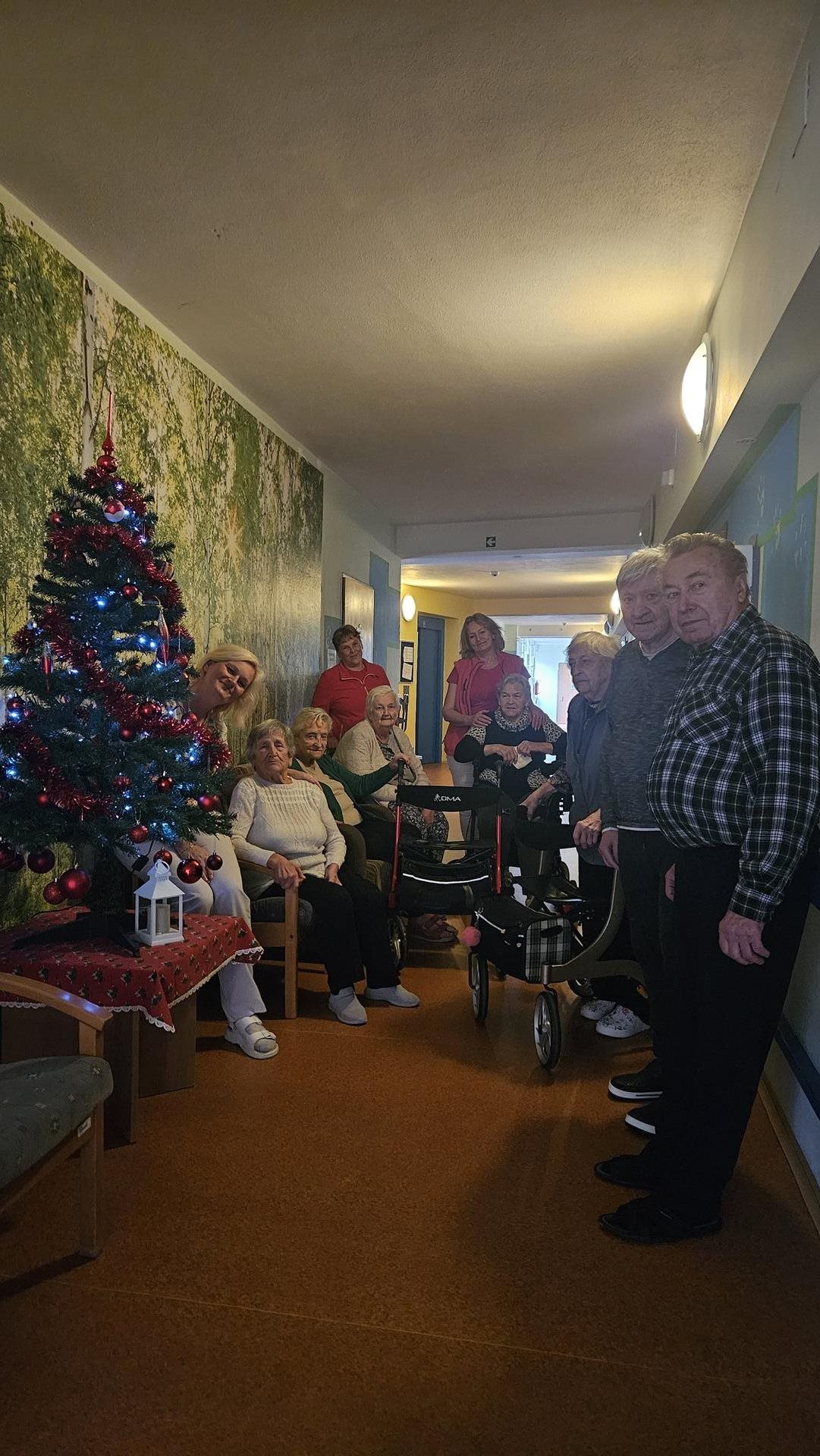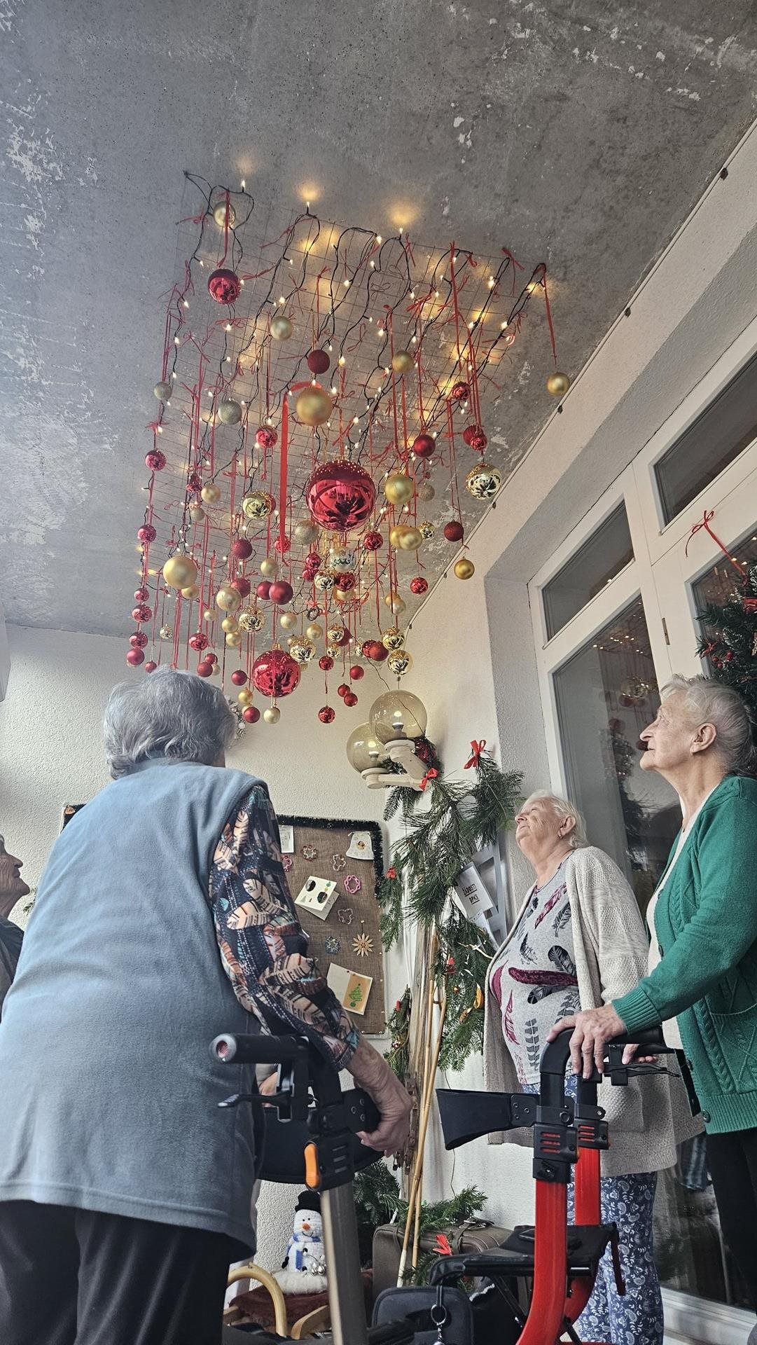 Adventní období máme u nás v Domově moc rádi. Ačkoliv je toho spousta, co je třeba zařídit, atmosféra je protkána těšením a sounáležitostí více než kdy jindy. Letos jsme rozsvěcování vánoční výzdoby vzali pěkně poctivě. Obešli jsme všechna patra, postupně rozsvítili všechny stromky a ten největší, nejkrásnější v hlavní hale, si nechali společně se sítem ozdob v zádveří úplně nakonec. Vždyť se říká .... to nejlepší nakonec. Putování po Domově po vánočních stromcích jsme zakončili společným posezením, ochutnávkou punče, vánočního cukroví a kynutých koláčků. Rozsvítili jsme první svíčku na adventním věnci, letos ručně vyrobeném z perníkového těsta a popřáli si pěkné předvánoční období.