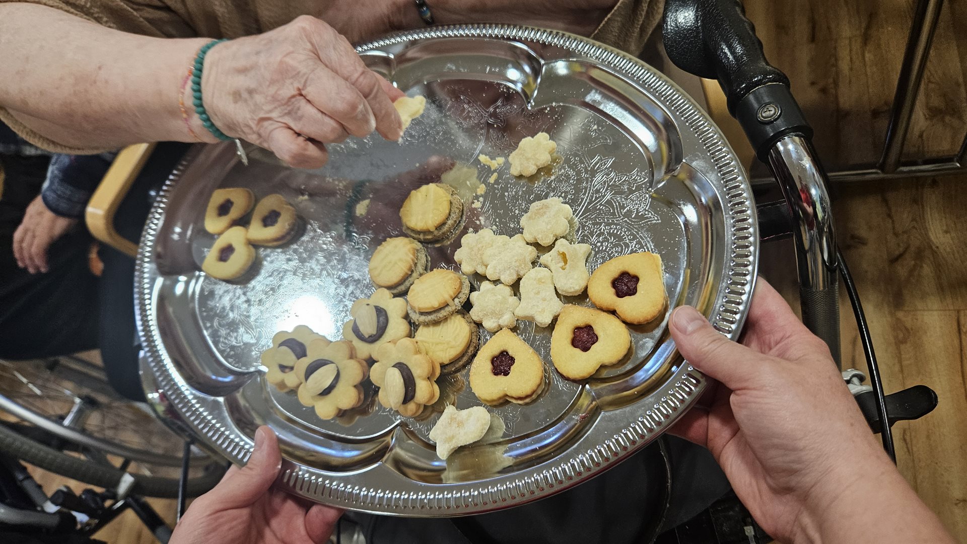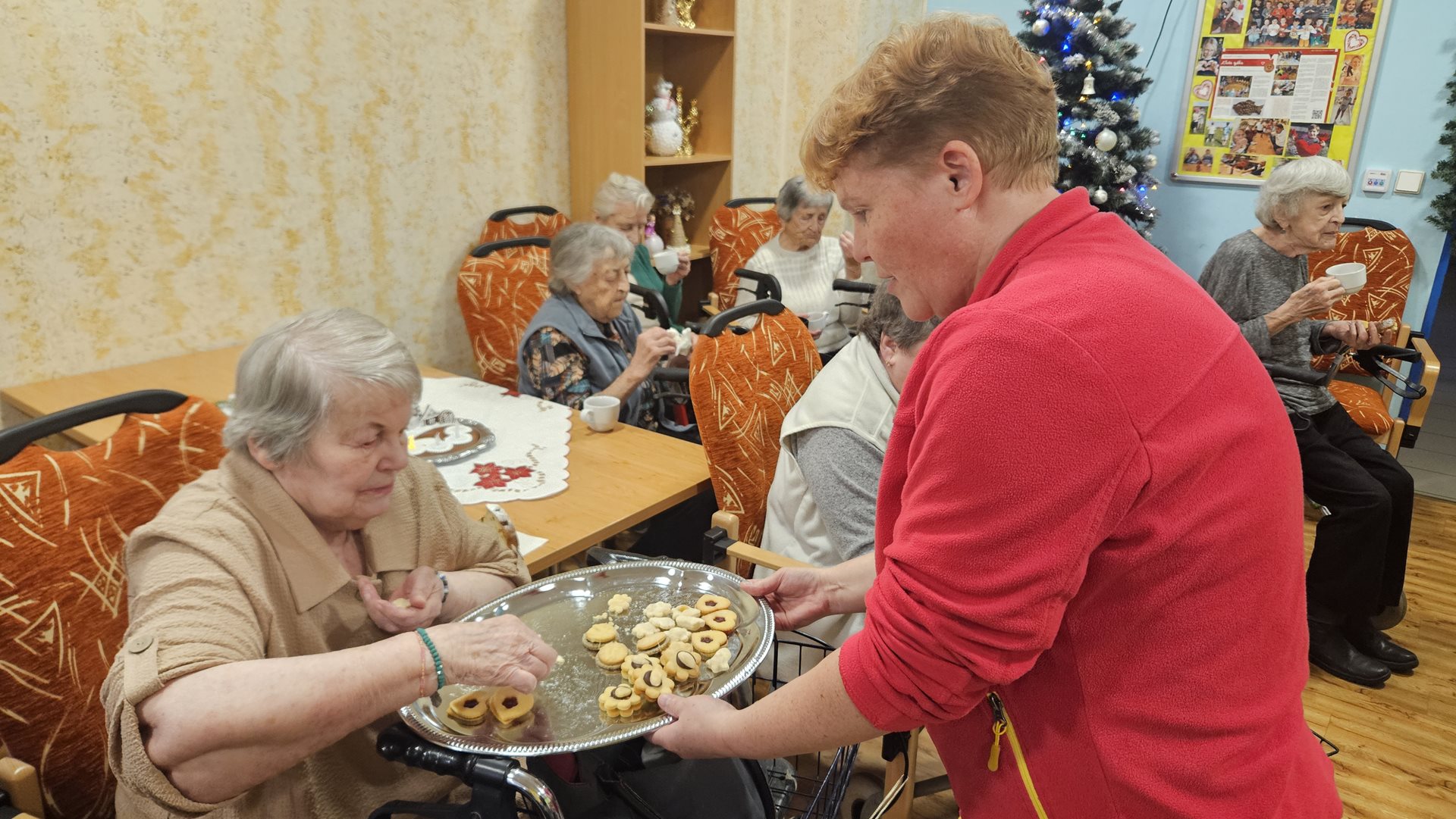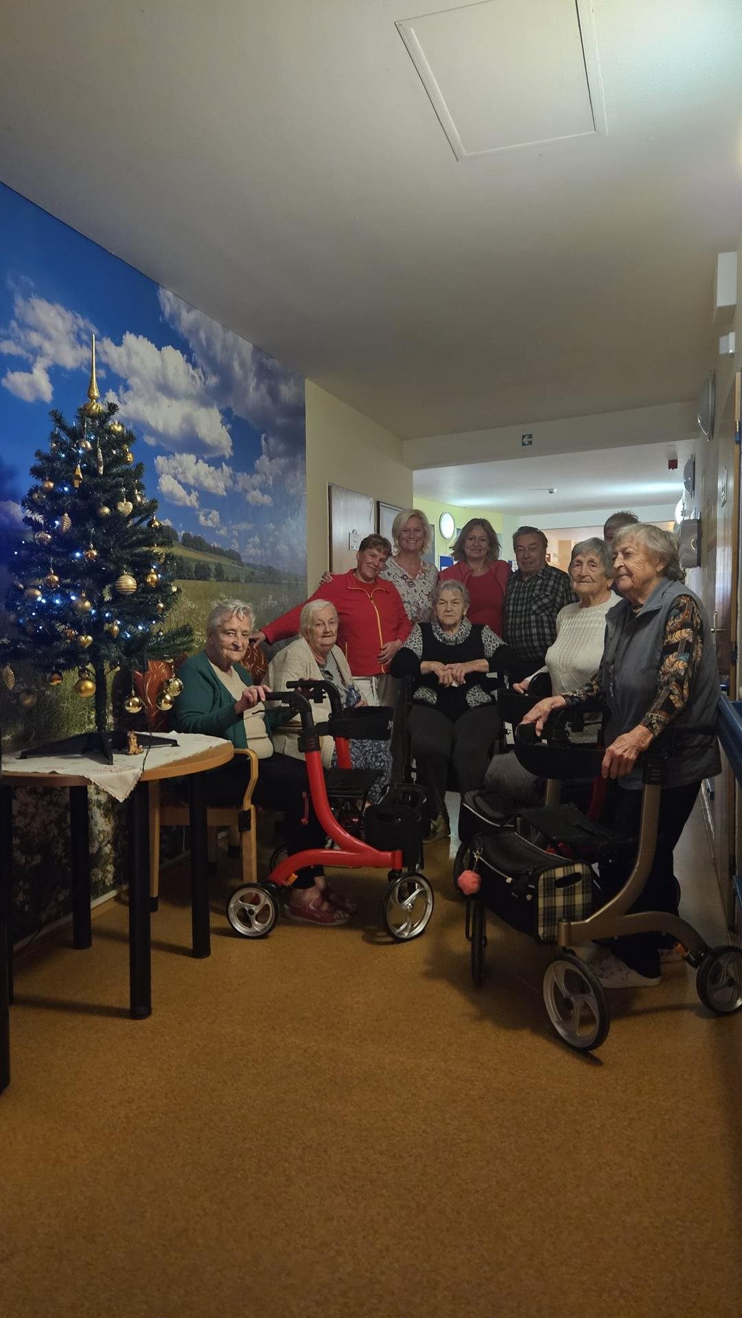 Adventní období máme u nás v Domově moc rádi. Ačkoliv je toho spousta, co je třeba zařídit, atmosféra je protkána těšením a sounáležitostí více než kdy jindy. Letos jsme rozsvěcování vánoční výzdoby vzali pěkně poctivě. Obešli jsme všechna patra, postupně rozsvítili všechny stromky a ten největší, nejkrásnější v hlavní hale, si nechali společně se sítem ozdob v zádveří úplně nakonec. Vždyť se říká .... to nejlepší nakonec. Putování po Domově po vánočních stromcích jsme zakončili společným posezením, ochutnávkou punče, vánočního cukroví a kynutých koláčků. Rozsvítili jsme první svíčku na adventním věnci, letos ručně vyrobeném z perníkového těsta a popřáli si pěkné předvánoční období.