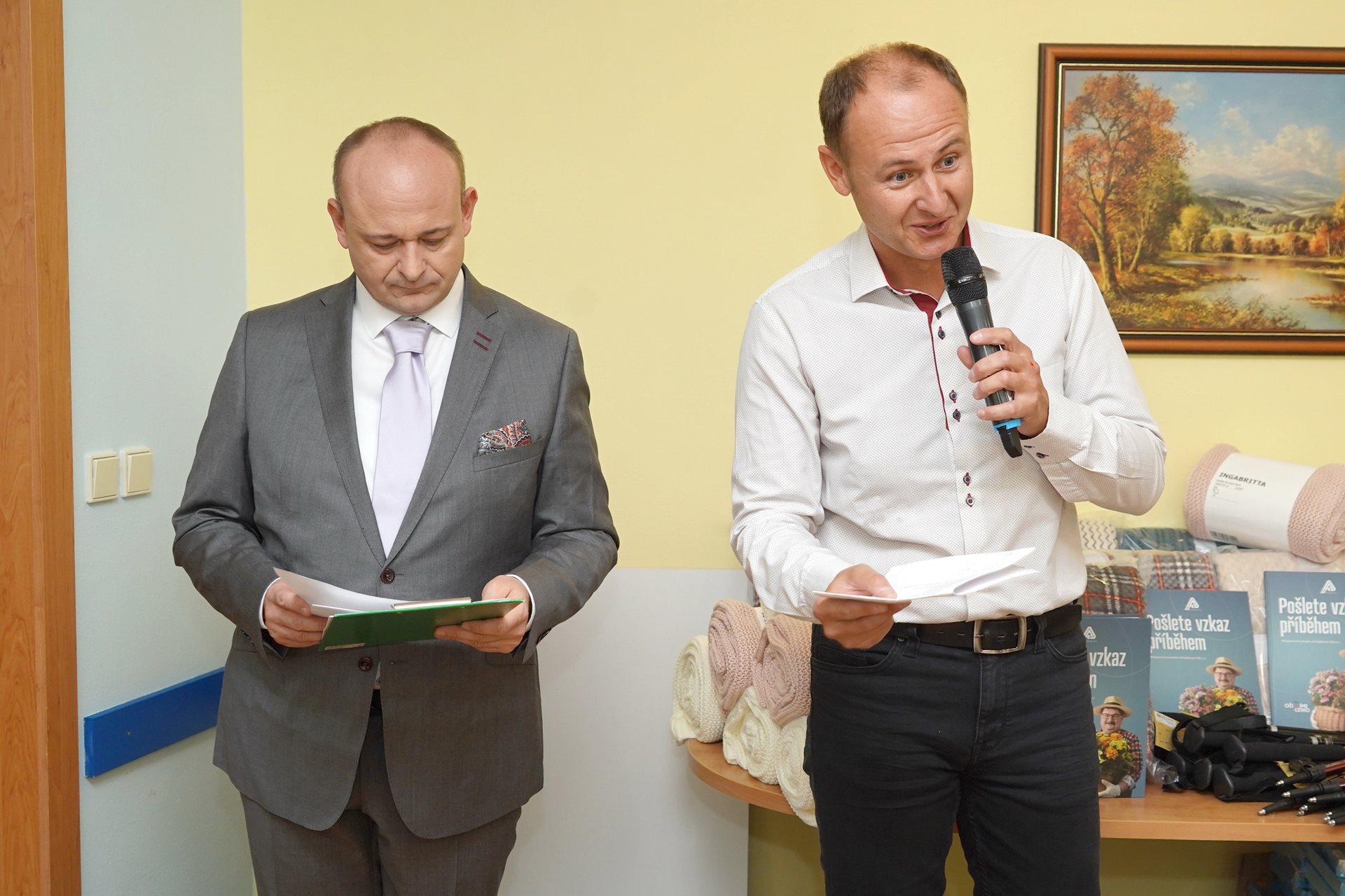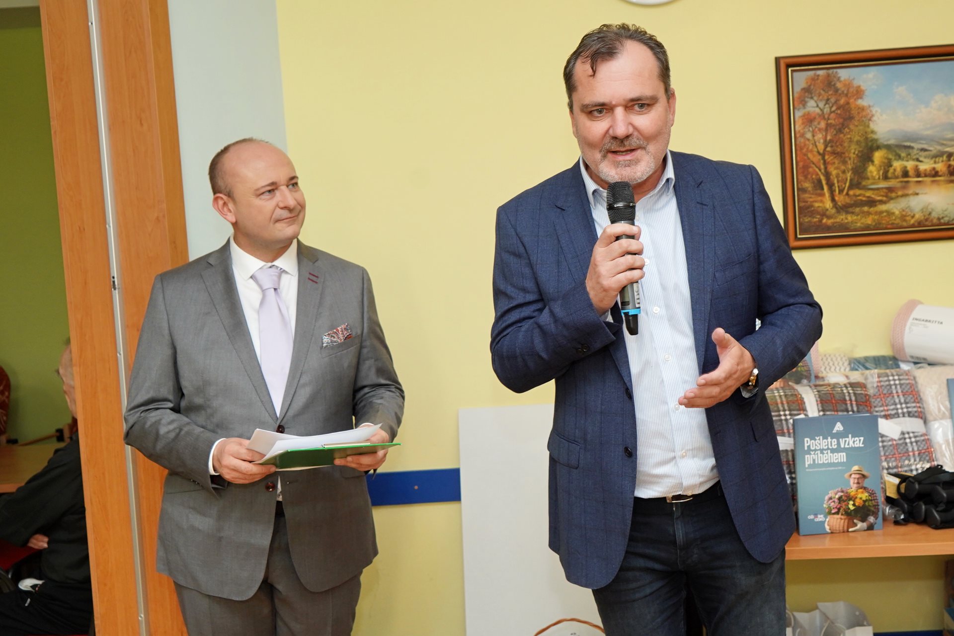Pondělní odpoledne bylo plné radosti. Přijeli zástupci VZP, a.s., která v rámci projektu Oživíme Česko vyhlásila v rámci mezigenerační spolupráce literární soutěž "Pošlete vzkaz příběhem". Z našeho zařízení se účastnili za pomoci aktivizačních pracovnic čtyři klienti, z nichž jeden v rámci své kategorie vyhrál hlavní cenu.