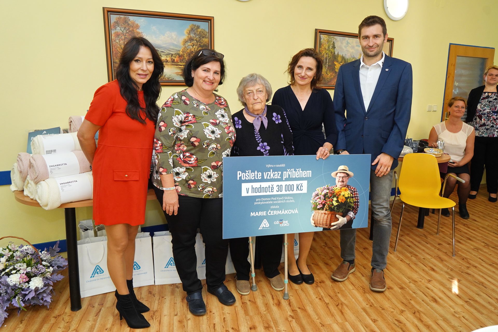 Pogratulovat výherkyni i ostatním účastníkům přijeli i zástupci města Říčany. Velikou radost jsme měli také z návštěvy zástupce našeho zřizovatele, radního Středočeského kraje pro oblast sociálních věcí, pana Mgr. Martina Hrabánka; stejně tak i z návštěvy Ing. Haliny Trskové, místopředsedkyně představenstva VZP, a.s. a duchovní matky celého projektu. Mezi gratulanty nechyběli ředitel našeho domova Ing., Bc. Václav Brácha, MBA a zástupkyně ředitele paní Mgr. Petra Suchánková a ostatní obyvatelé Domova. Velmi příjemným zpestřením celého odpoledne bylo i nesmírně srdečné a chytlavé vystoupení zpěvačky Heidi Janků. Děkujeme za krásný projekt i slavnostní momenty.