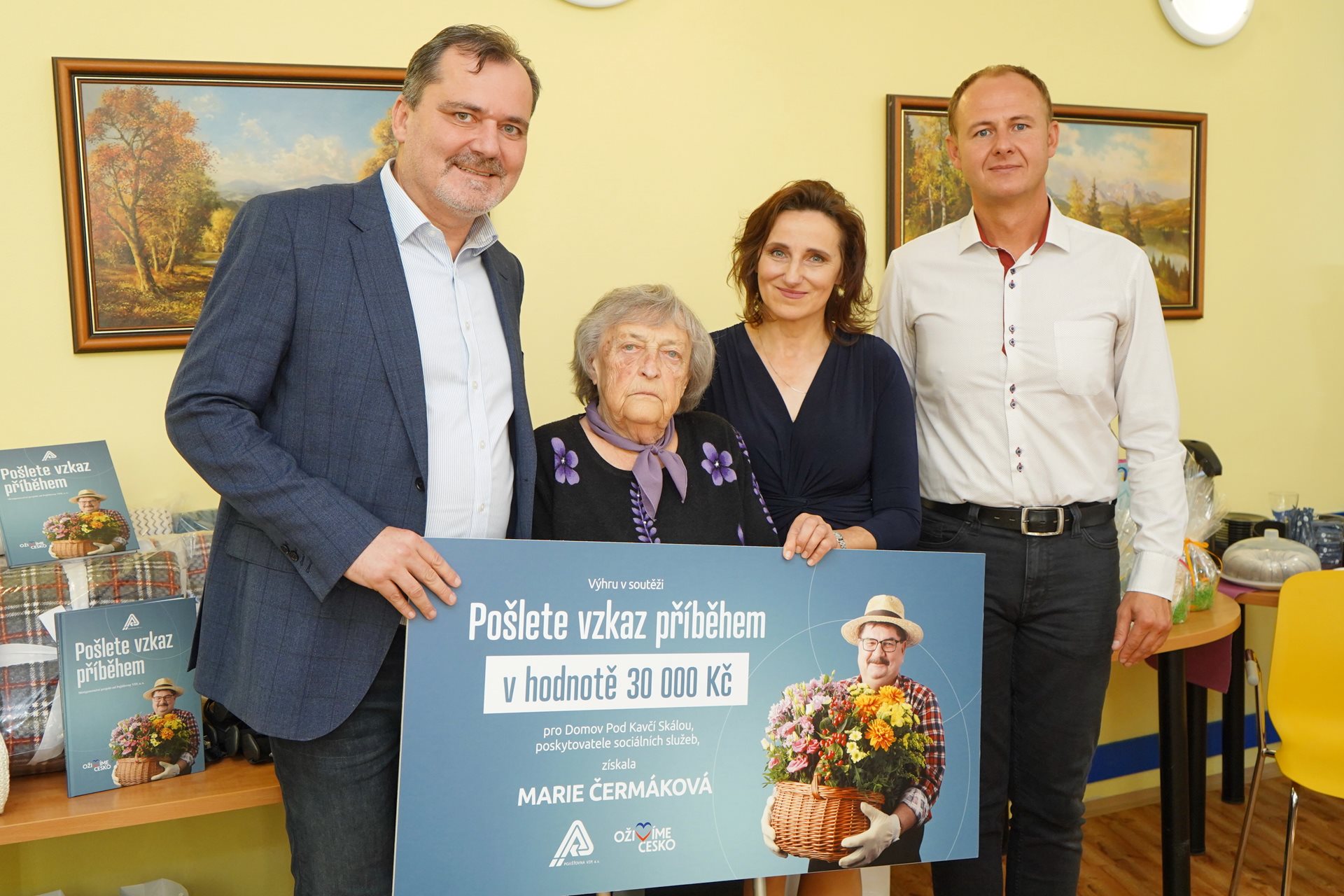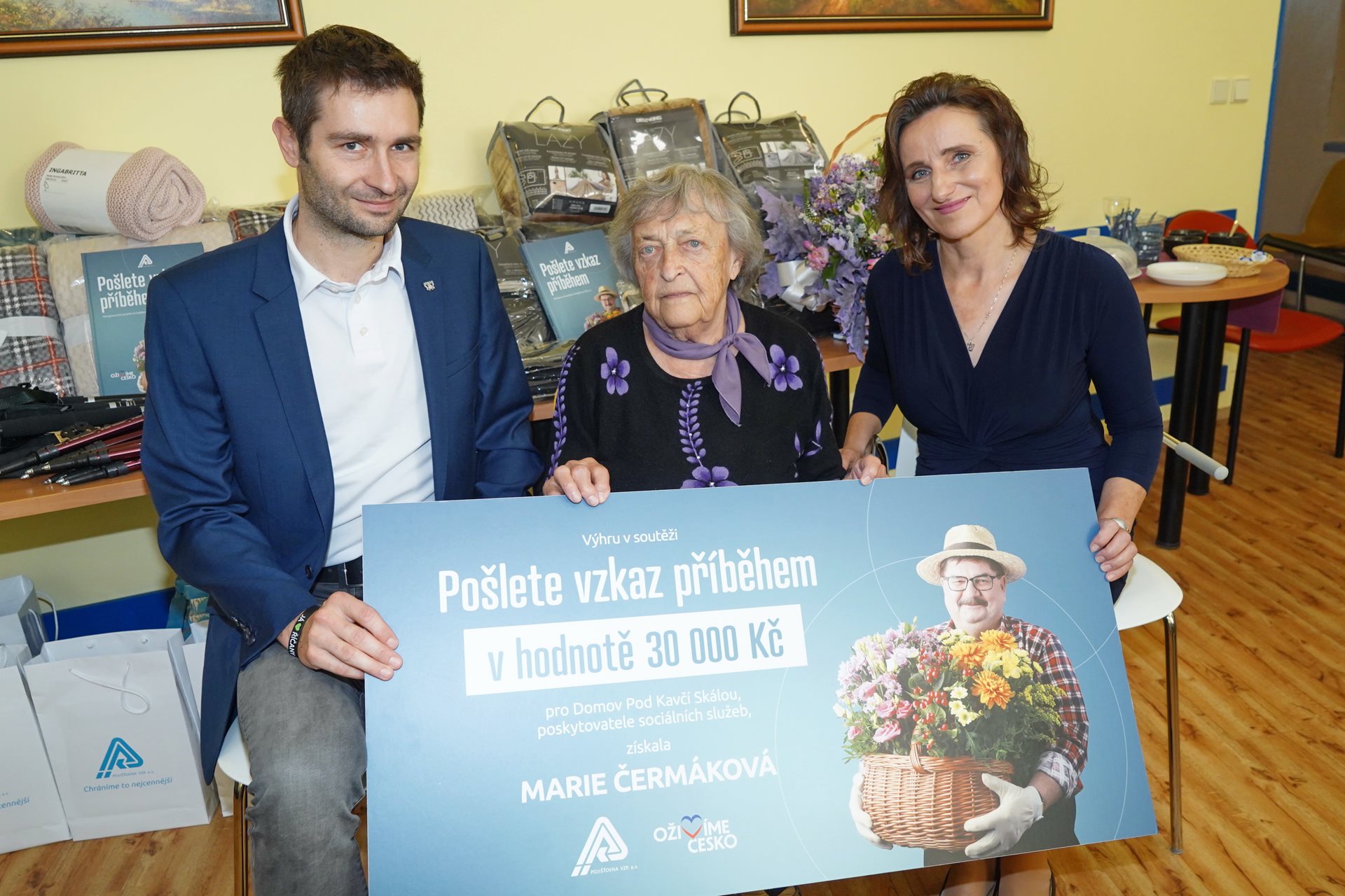 Jsme právem pyšní na naši obyvatelku, paní Marii Čermákovou (92 let), která svým příběhem "Křížem krážem aneb Jak jsme cestovali" okouzlila hodnotící komisi a řadu dalších čtenářů. VZP si pro zařízení, z něhož vzešel výherce, připravila řadu krásných cen v celkové hodnotě 30.000 Kč, které naši klienti rádi využijí.
