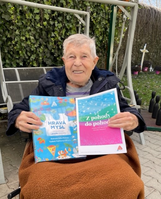 V lednu jsme se zapojili do soutěže OŽIVÍME ČESKO s námětem „ Pošlete vzkaz příběhem“, kterou pořádala Pojišťovna VZP speciálně pro seniorskou veřejnost. Náš Domov reprezentovali 4 klienti, napsali krásná dílka a na začátku března jsme je odeslali. Včera nás překvapil balíček s poděkováním za jejich příběhy. Pořadatel nám zaslal i knížku Z POHODY DO POHODY a PROCVIČOVACÍ PUZZLE – HRAVÁ MYSL. Měli jsme velkou radost a pořadateli za tyto pozornosti moc děkujeme.