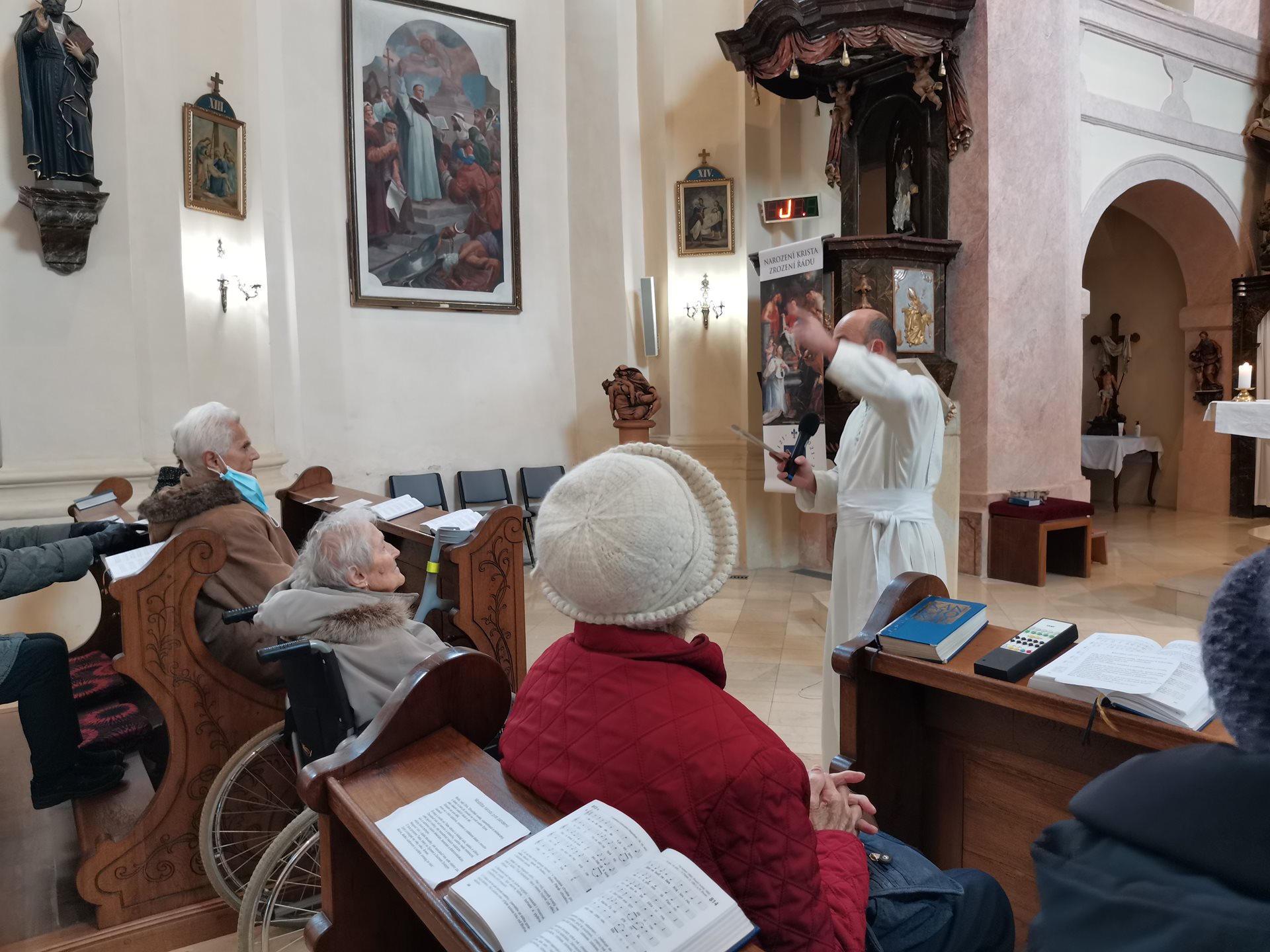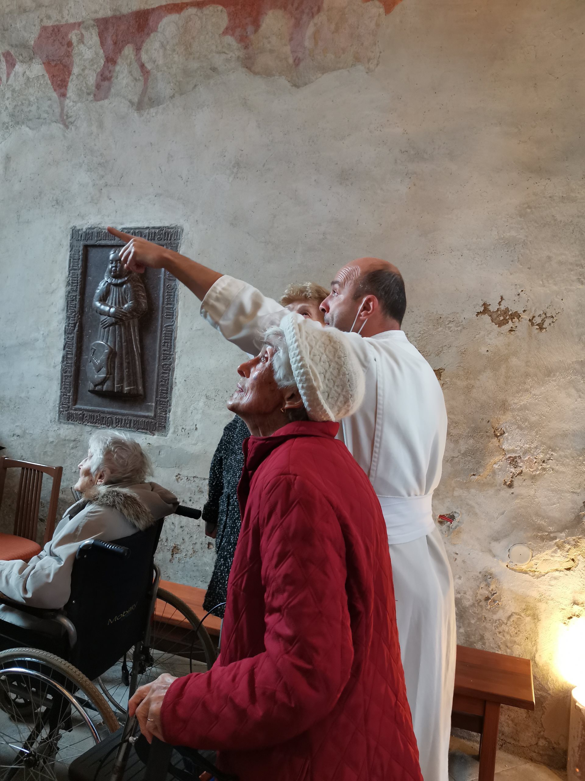 Na sklonku podzimu jsme ještě uspořádali společnou vycházku a návštěvu místního kostela, kde nás přivítal Otec Konstantin, který za námi dochází i do domova. Otec Konstantin nám vyprávěl o historii kostela, společně jsme se pomodlili a pak jsme si povídali. Témata se většinou zaměřovala na chod fary a kostela. Klienty zajímalo, kdo o kostel pečuje a jaká je návštěvnost.