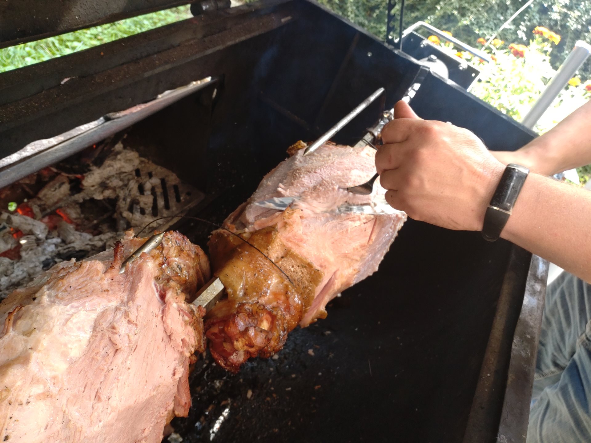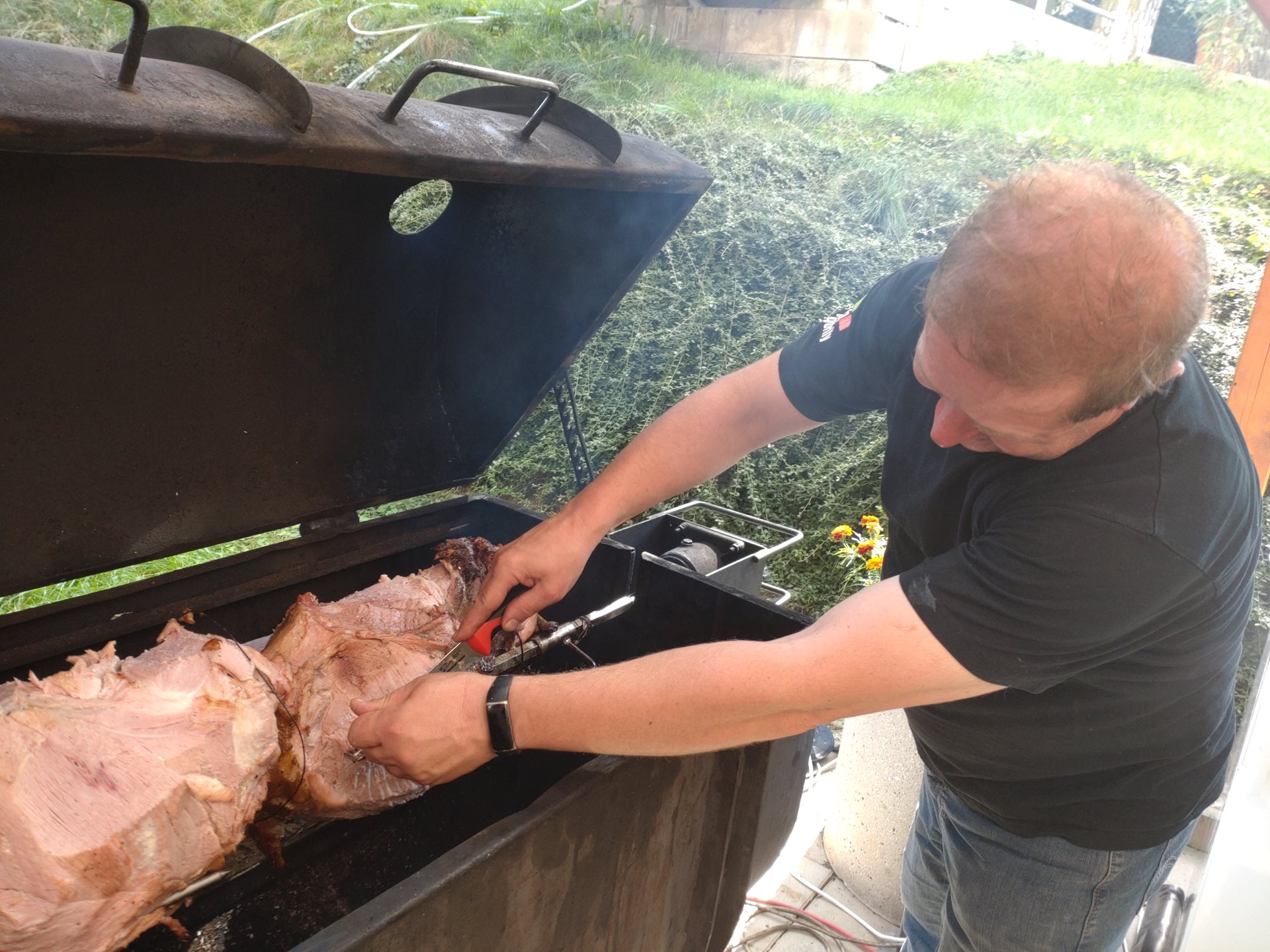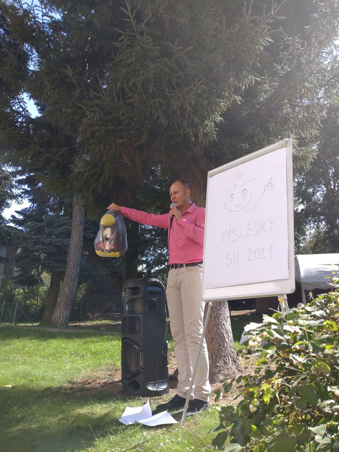 Počasí nám přálo, celý den probíhala akce v příjemném teplém babím létě, tudíž po zdolání všech disciplín jsme se mohli sejít na zahradě a posedět venku při živé hudbě a pochutnat si na grilované kýtě, kterou u příležitosti Sportovních her už tradičně připravujeme.