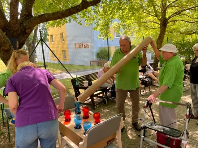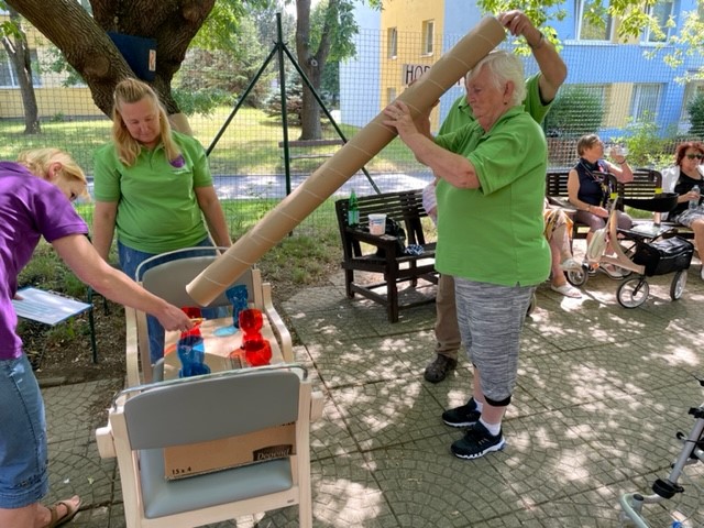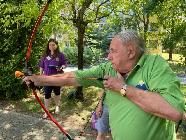 v Domově pro seniory Praha - Háje a my jsme se jako už tradičně účastnili, tentokrát s týmem tří soutěžících. Soutěžili jsme v sedmi disciplínách: Ruské kuželky, Hod koulí, Šmátralka, Abeceda, Střelba z luku, Terč a Tajná disciplína.