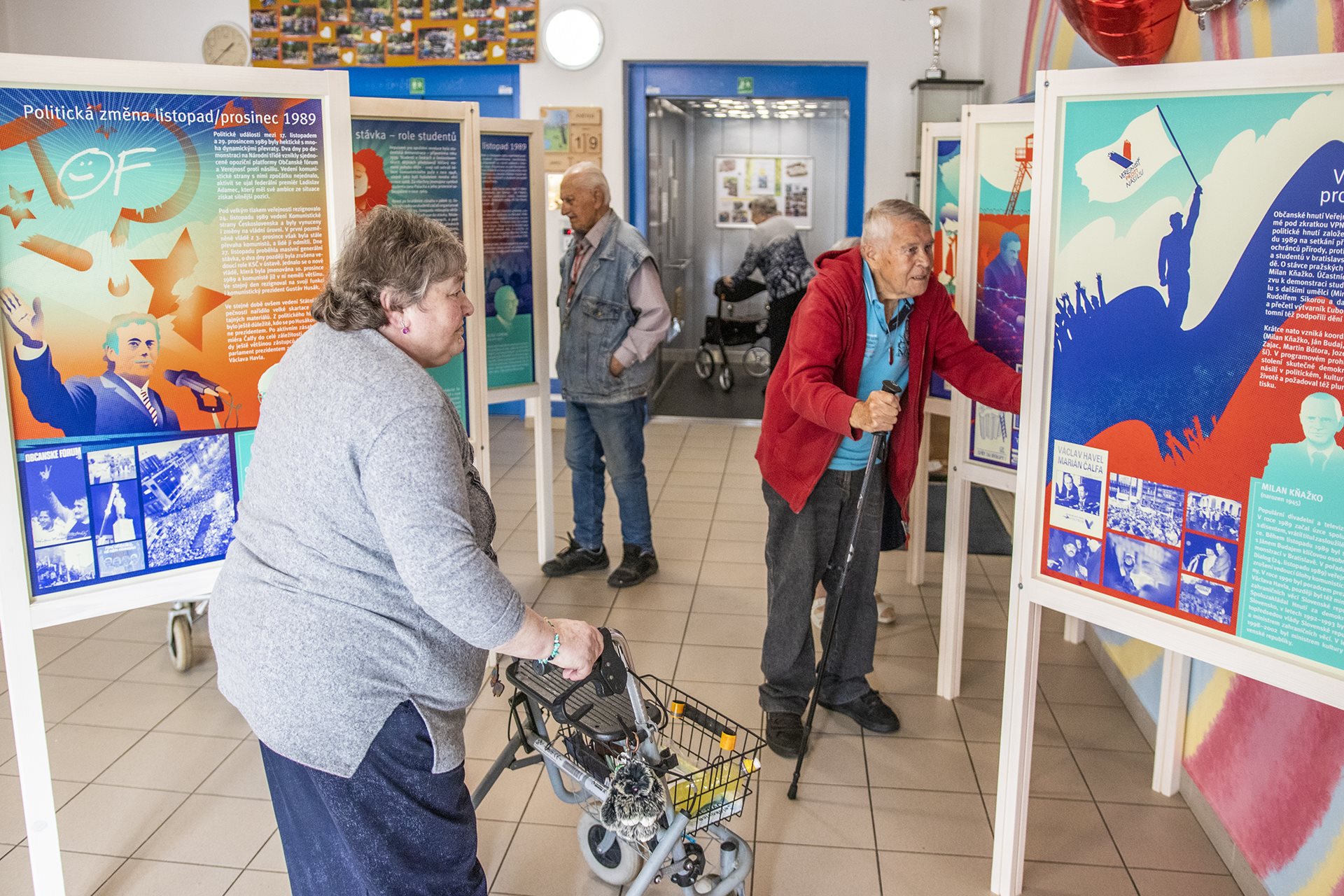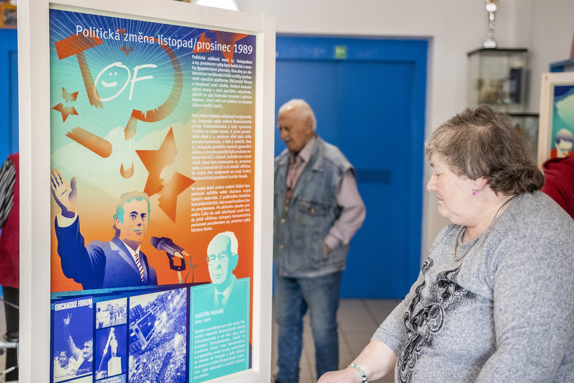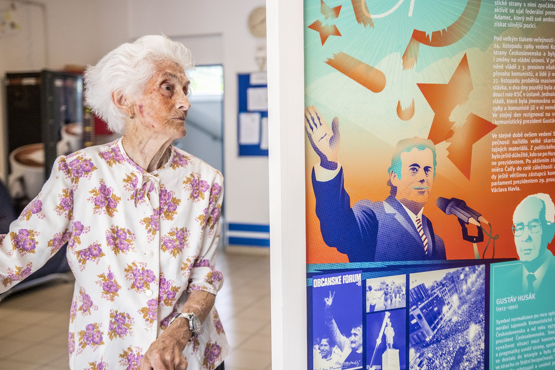 Pracovníci Národního muzea v prostorách Domova naistalovali první ze čtyř tematických celků Putovní výstavy. Tentokrát se věnuje předlistopadové době a listopadovým událostem.