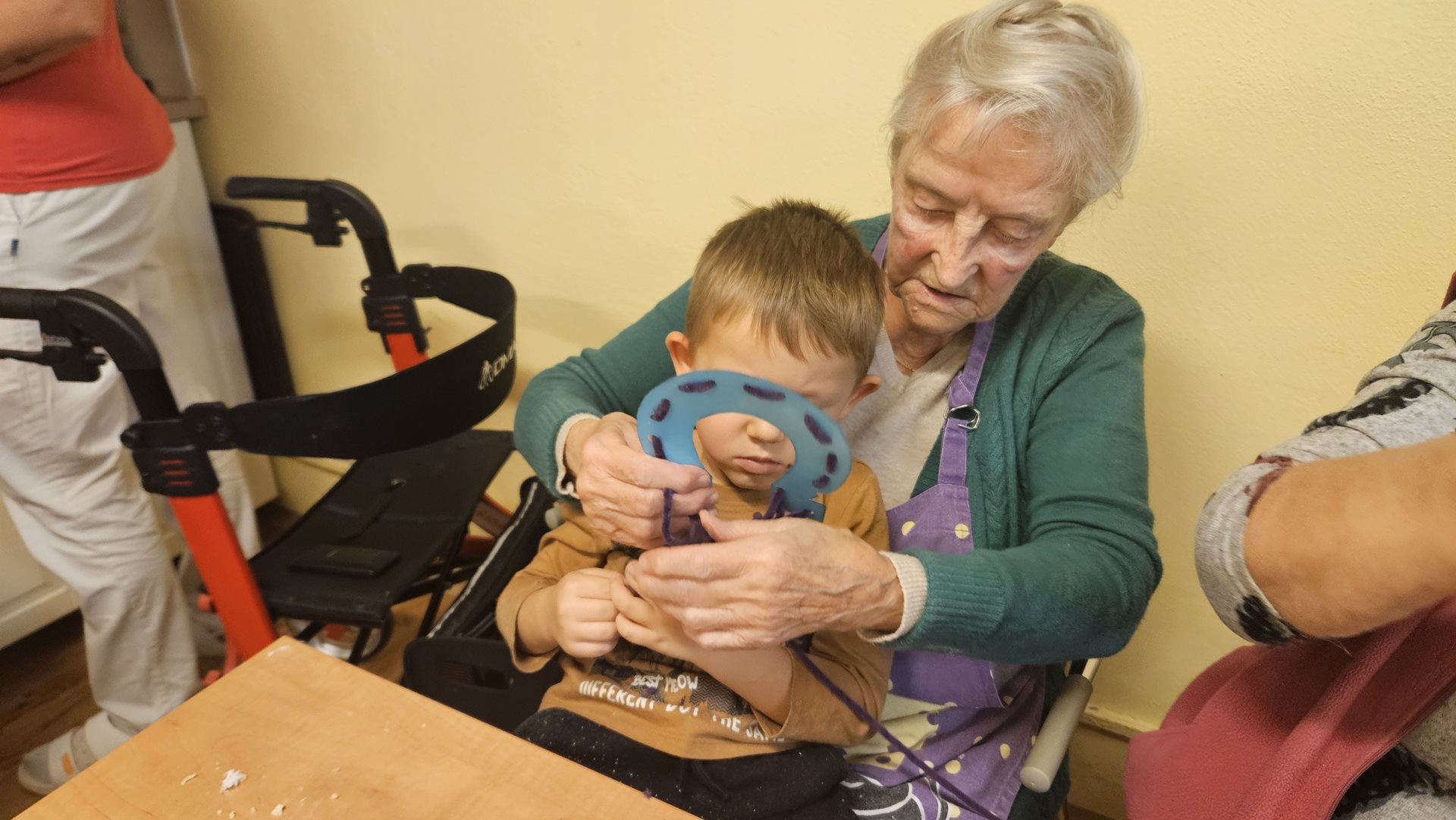 Mezigenerační spolupráce má u nás v Domově pevně zapuštěné kořeny. Děti ze třídy Zajíčků za námi chodí pravidelně a velmi se těší na každou hodinu, kdy společně se "svými babičkami a dědečky" něco tvoří. Je jedno, zda pečou koláče nebo perník nebo jestli společně připravují sezónní výzdobu. Důležité je tam to "spolu". Tentokrát jsme se sešli a vrhli se v souladu se sezónou na pečení svatomartinských rohlíčků. Poté jsme si vyrobili koňskou podkovu z papíru pro štěstí. To bylo vůně a radosti po celém domově.