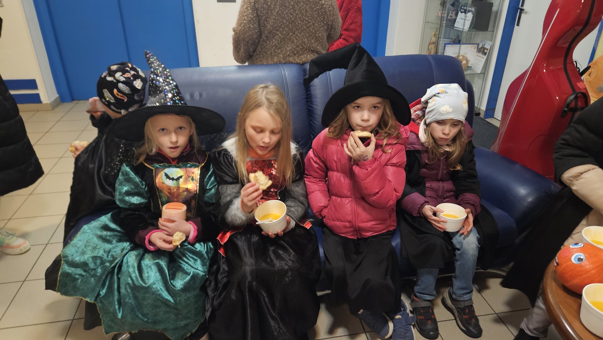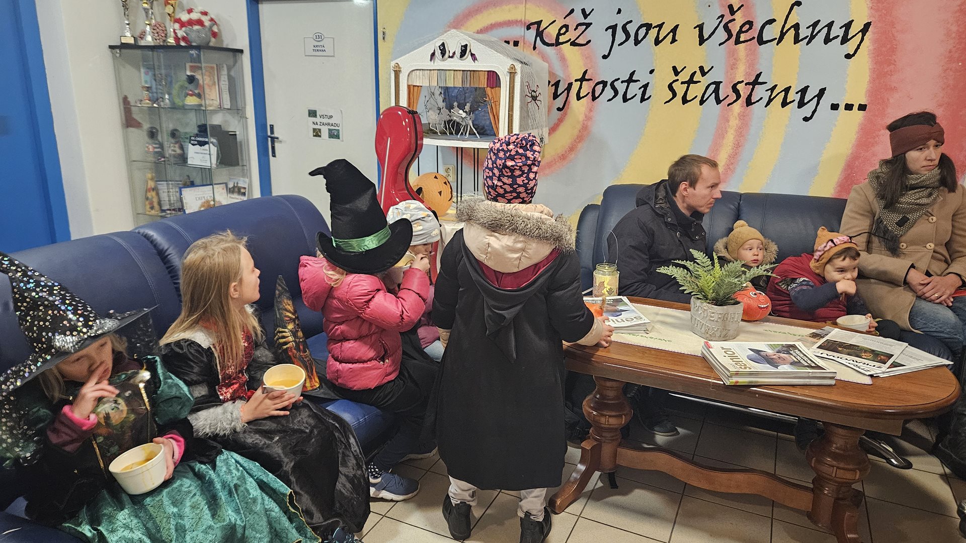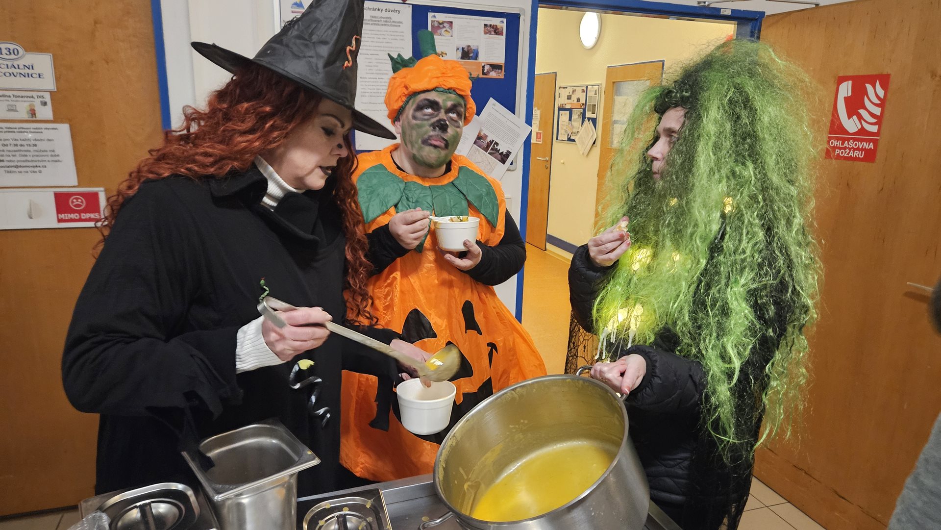 Už počtvrté v řadě jsme období na přelomu října a listopadu uspořádali v rámci projektů mezigenerační spolupráce akci Dýňování. Mladá společnost žije Halloweenem a tradiční společnost dušičkami. My se touto akcí snažíme propojit tyto dva světy, jak nejlépe to jde. Děti se k nám večer vypraví s lampiony v maskách s vědomím, že na ně čekají úkoly a za ně sladká a horká odměna. Horká dýňová polévka, kterou pro ně uvařili jejich "dědečkové a babičky" a voňavý teplý čaj. Akcí je provází Paní Kostlivá, ti nejstatečnější se s ní i vyfotí ve fotokoutku. Polévku dostanou od Pana Dýňáka či čarodějnic. Vše se odehrává za přítomnosti a podpory jejich "dědečků a babiček". Pro ty si navíc děti připraví jako překvapení kynuté koláčky s jablečnými povidly, které předtím společně v rámci mezigeneračních setkávání uvařili. Zase nám všem bylo hezky. Určitě budeme příští rok opakovat. Jen úkoly pro děti vymyslíme nové, ať je to pořád baví.