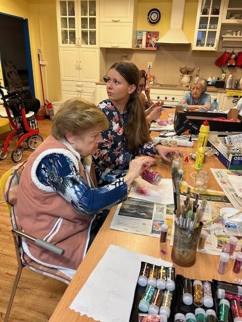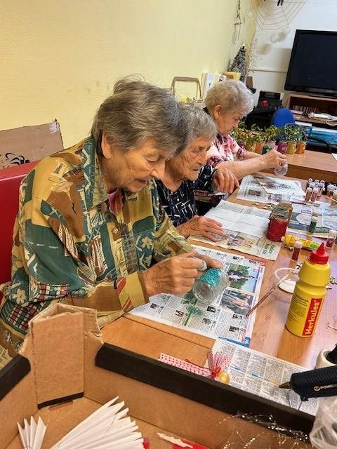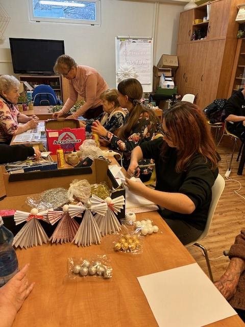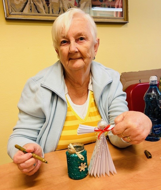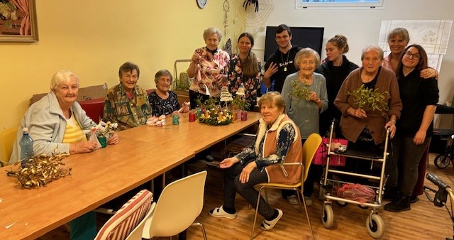 Jako už tradičně každý rok se s našimi obyvateli potkáváme na vánočním tvoření se žáky ze Střední školy řemesel z Kunic, kteří k nám celoročně dochází na praxi. Je to takové příjemné završení celoroční spolupráce, posezení v příjemné atmosféře a poznání se jinak, než při běžném provozu. Studenti si pro naše obyvatele připravili mnoho nápadů na vánoční tvorbu, přivezli materiál a tak jsme společně tvořili, lepili, malovali a bylo nám dobře. Dokonce i adventní věnec jsme společně vyrobili....... a pouštěli jsme si pro atmosféru vánoční koledy.