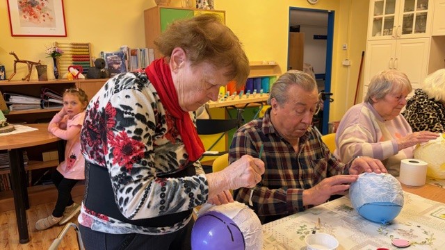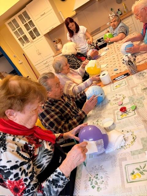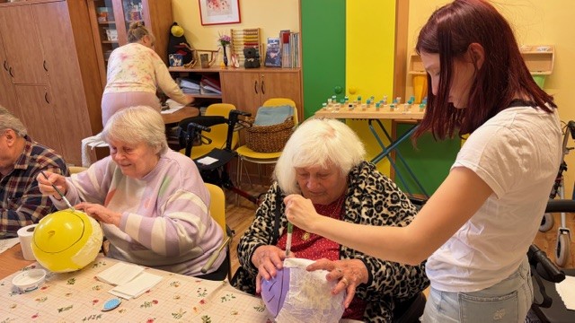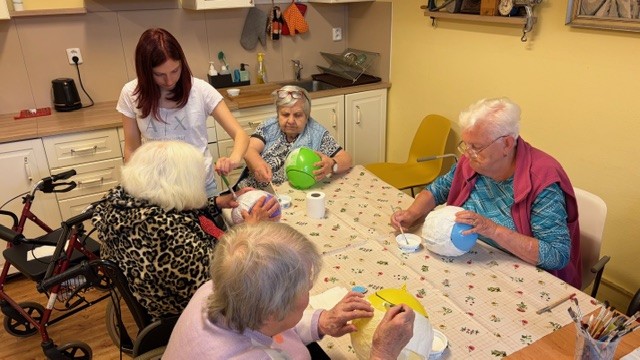 Velikonoční tvoření aneb workshop se u nás koná pravidelně každý rok. Toto setkání se žáky Střední školy řemesel z nedalekých Kunic je milá akce. Společně tvořit a u toho si povídat napříč generacemi je cennou příležitostí ke sdílení a porozumění. Společná chvíle přinesla mnoho úsměvů a příjemných slov, ale také a zejména výsledky společného rukodělného snažení - velikonoční dekorace. Studenti ještě ke konci seniorům předali vlastnoručně vyrobené sáčky ve tvaru zajíčků se sladkostí uvnitř a popřáli jim krásné svátky jara. Děkujeme.