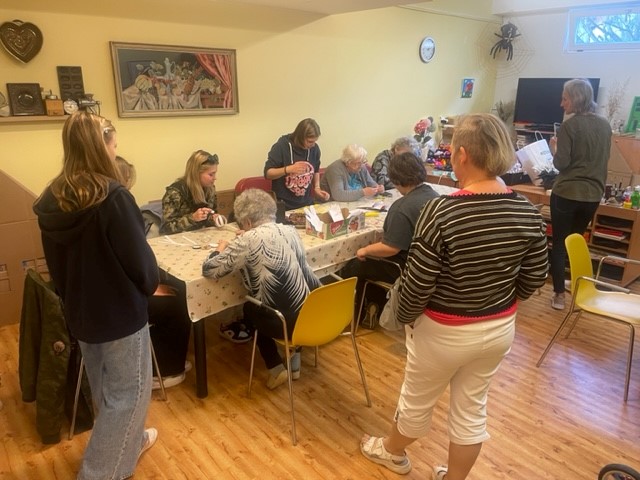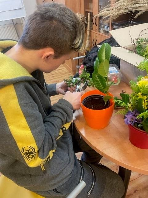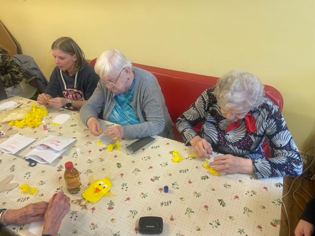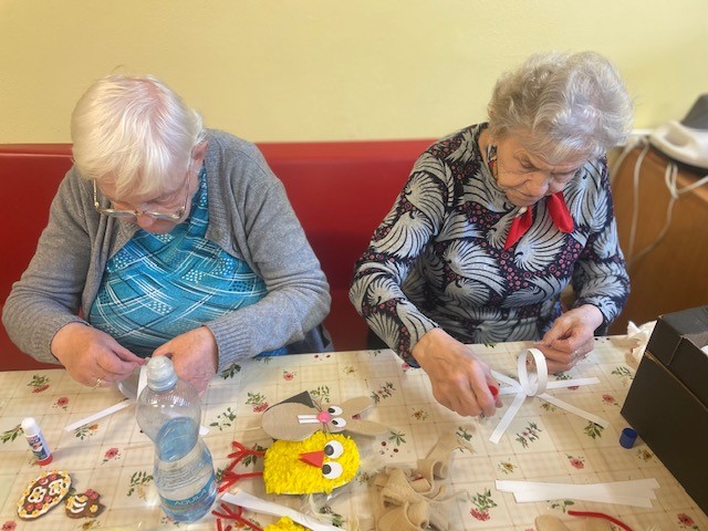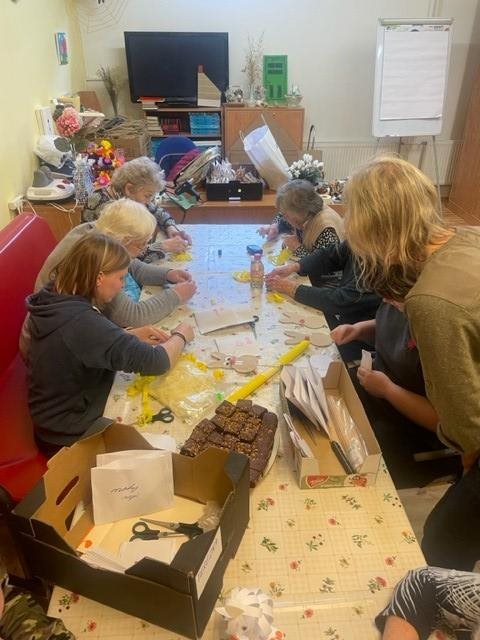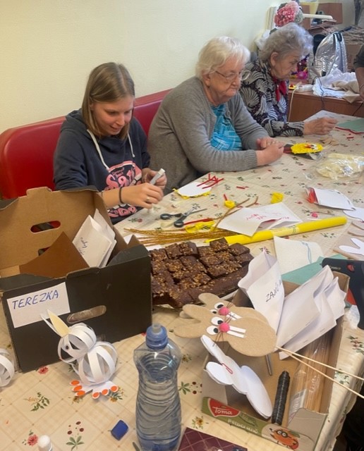 Společné tvoření před svátky jara se studenty Střední Školy Řemesel z Kunic je v našem zařízení už tradicí. Letos proběhlo přímo na první jarní den. Studenti si pro naše klienty připravili potřeby na výrobu zajíčků a kuřátek. Pracovalo se převážně z papíru, krepového papíru a peří. Mladý florista nám naaranžoval květináče s motivem velikonoc, můžete se jimi potěšit v naší vstupní hale. Naši klienti se na společné setkání s Kunickými těšili a dopoledne pro ně připravili čokoládové brownies. Byl to hezký společně strávený čas a na konci si všichni pochutnali. Jaro jsme přivítali slibně. :-)