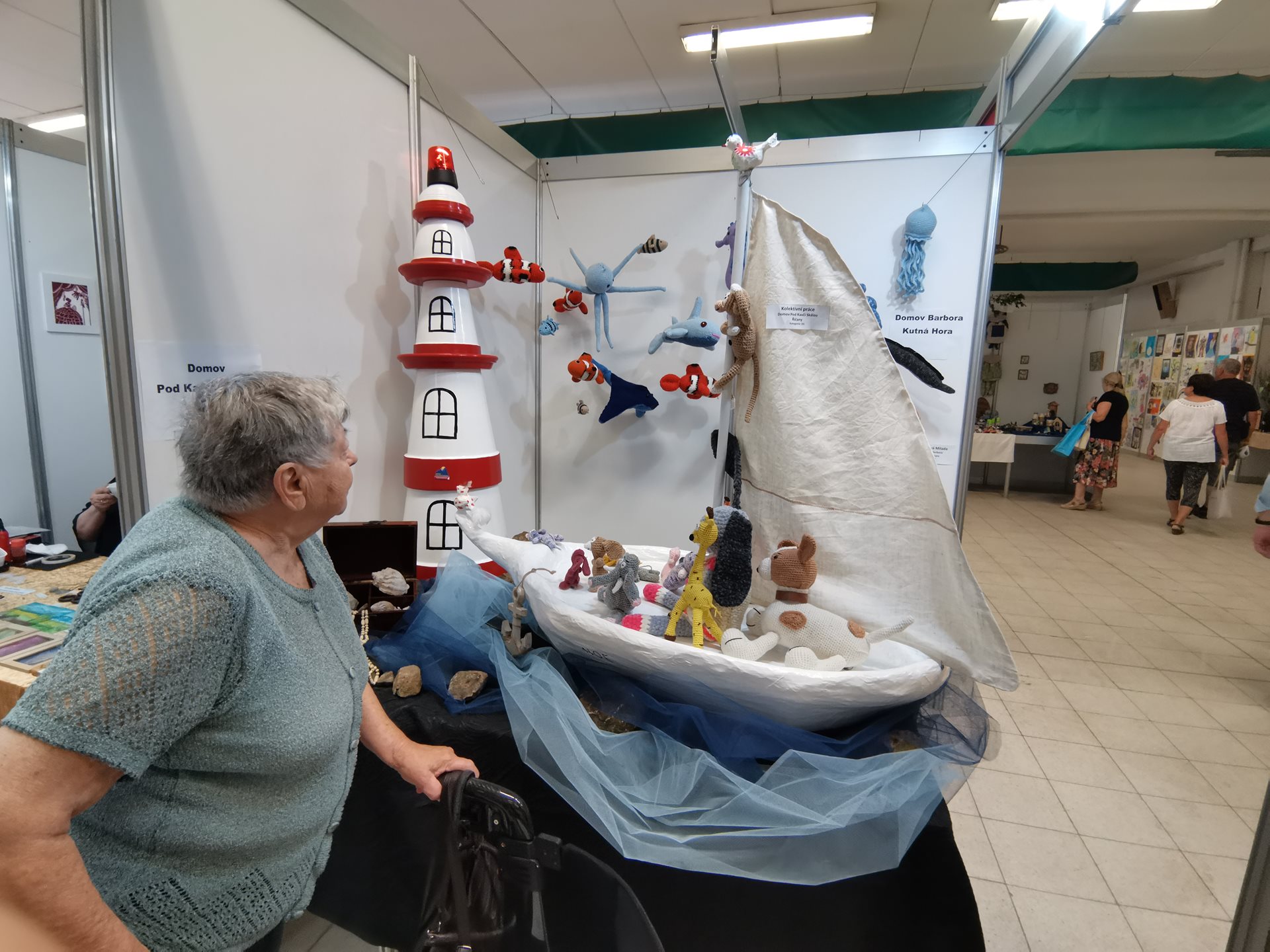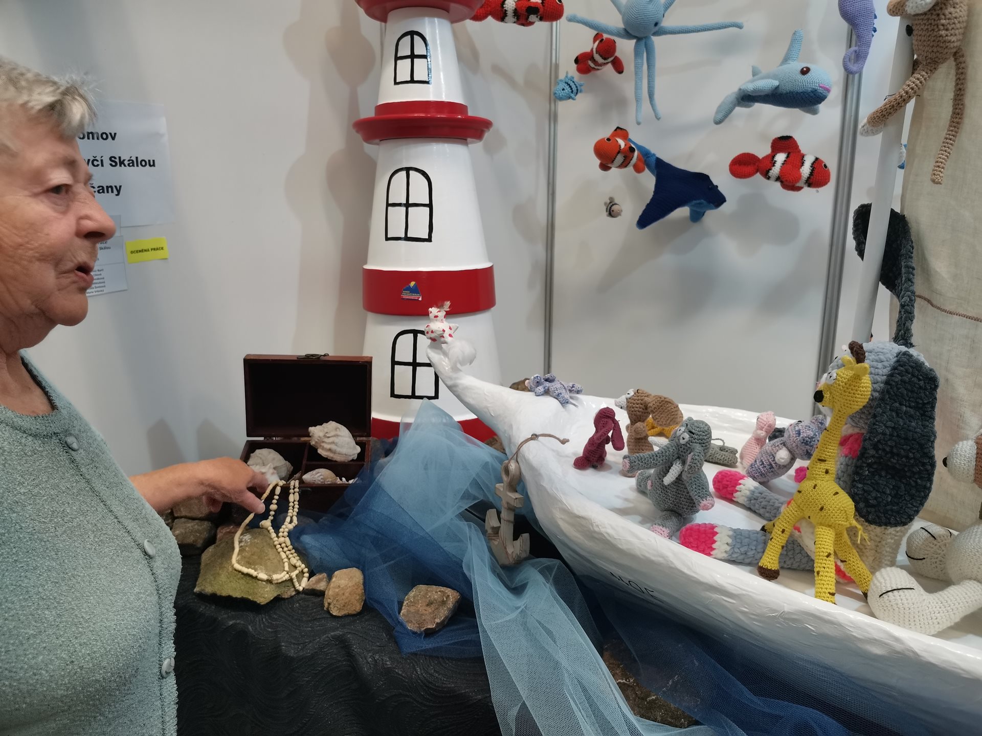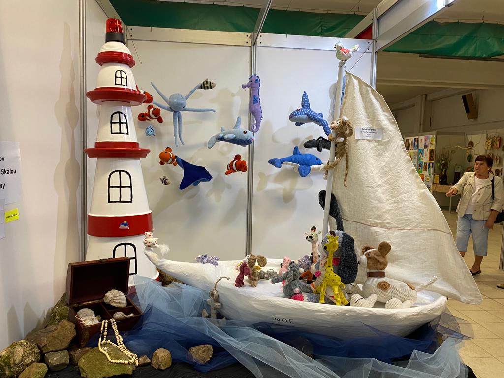 My jsme tentokrát prezentovali kompozici nazvanou Noemova archa, kde jsme ukázali, co vše se dá vytvořit z květináčů a odpadového papíru, a také jak krásná mohou být háčkovaná zvířátka z rukou našich klientek.